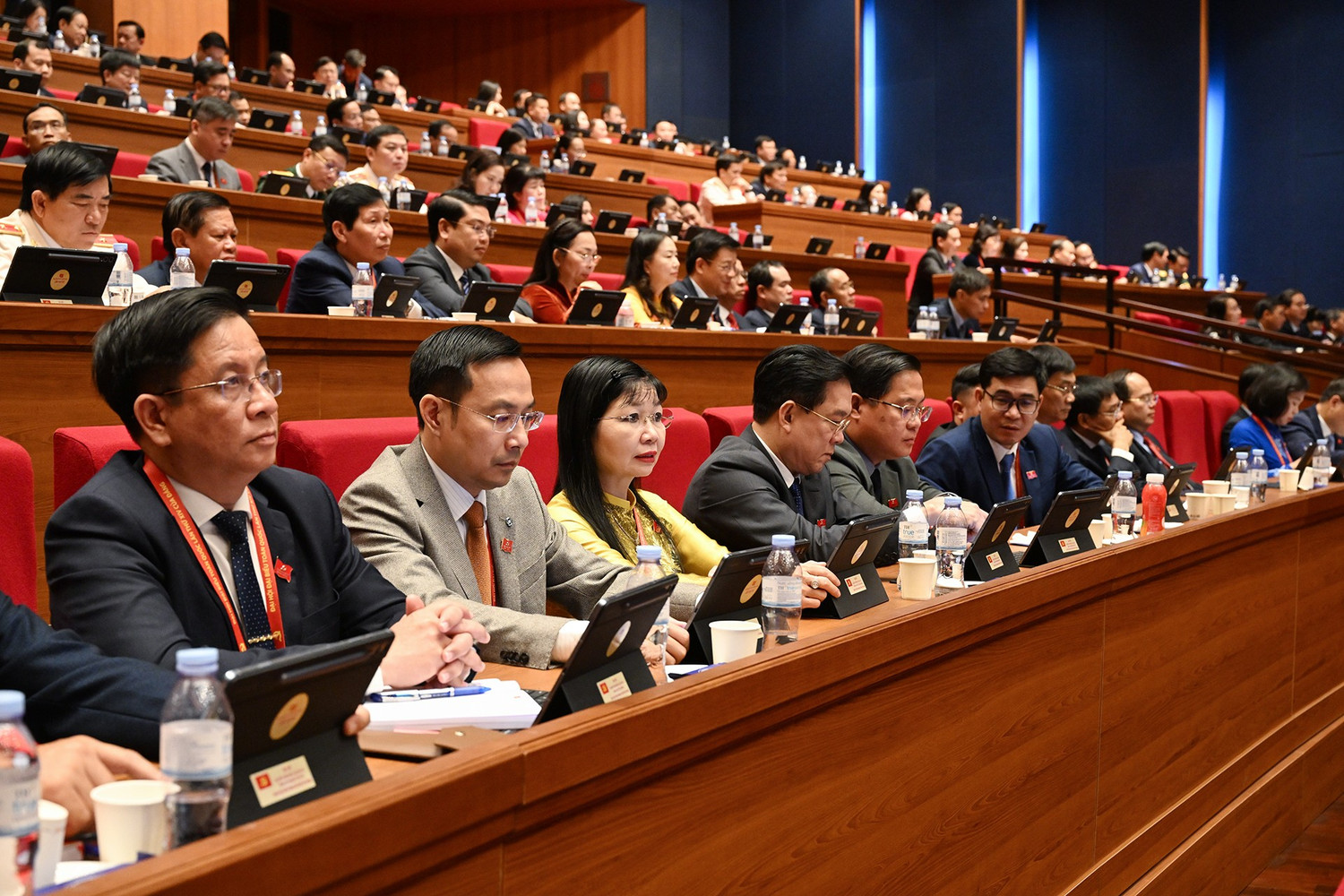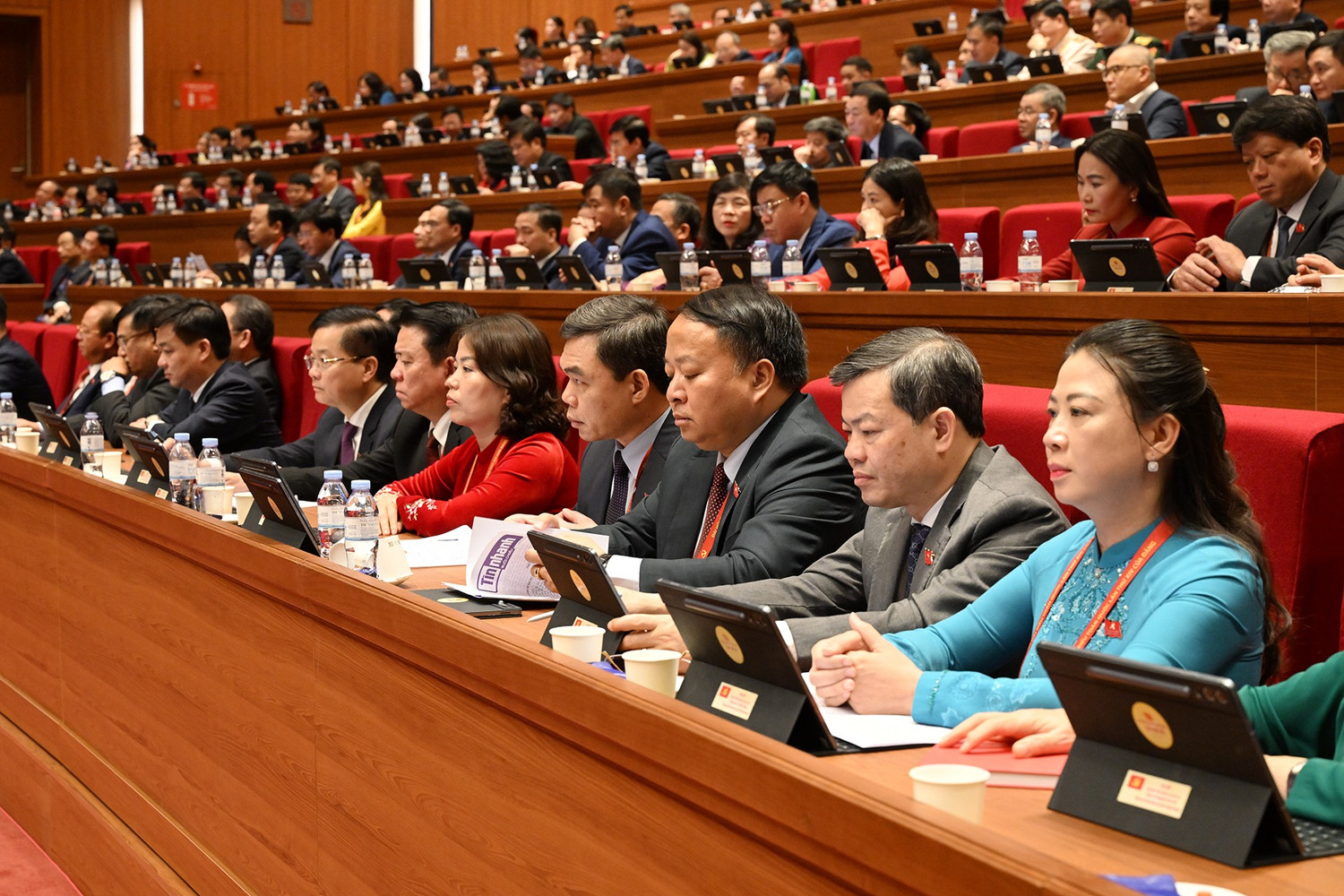 Các đại biểu đoàn Bắc Ninh tại phiên thảo luận ở hội trường về các Văn kiện Đại hội.