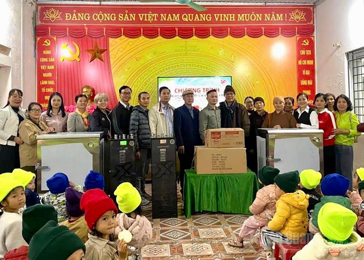 Đoàn từ thiện chùa Cảnh Linh trao trang thiết bị và quà mùa đông cho trường Mầm non Việt Hồng, xã Hùng An.