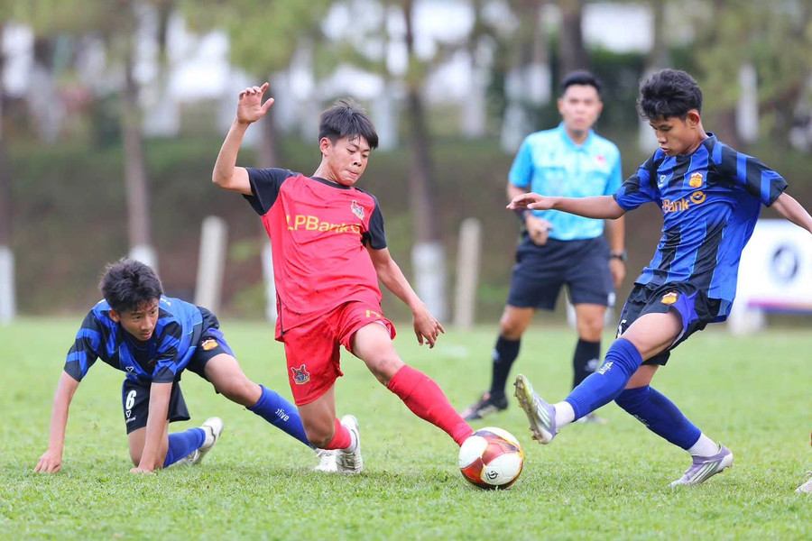Cầu thủ U15 LPBank Hoàng Anh Gia Lai (áo xanh) thi đấu tại vòng loại Giải bóng đá vô địch U15 quốc gia 2026. Ảnh: Học viện HAGL