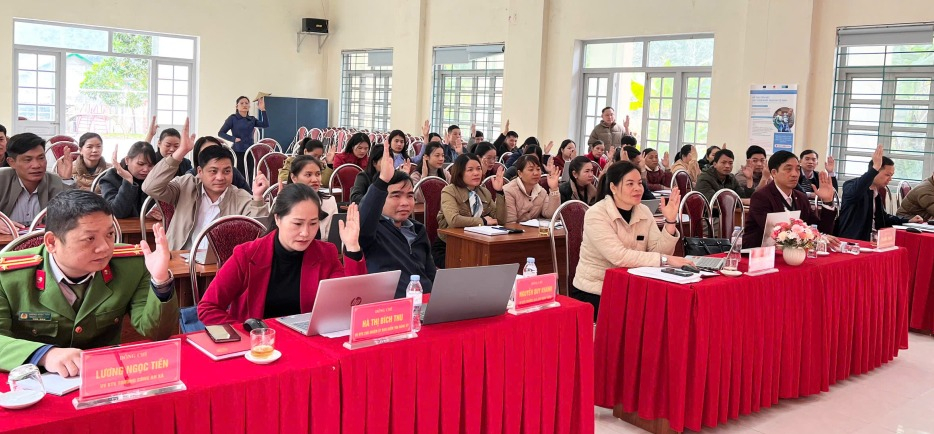 Các đại biểu biểu quyết danh sách người được giới thiệu ứng cử đại biểu HĐND xã Đức Long, nhiệm kỳ 2026 - 2031.