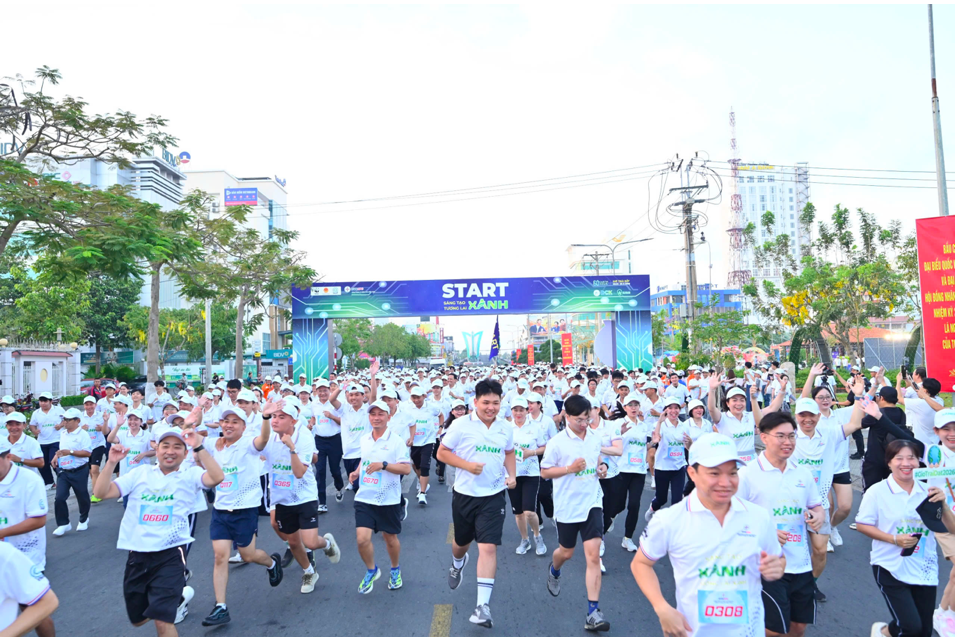Đông đảo CBCNV ngành Điện miền Nam và người dân tỉnh Vĩnh Long tham gia Giải chạy bộ hưởng ứng chiến dịch Giờ Trái đất 2026. (Ảnh: PC Vĩnh Long)