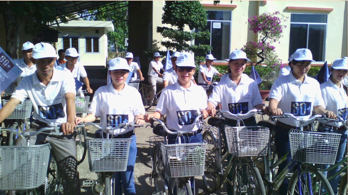 CBCNV Công ty Điện lực Lâm Đồng đạp xe hưởng ứng Chiến dịch Giờ Trái đất 2026. (Ảnh: PC Lâm Đồng)