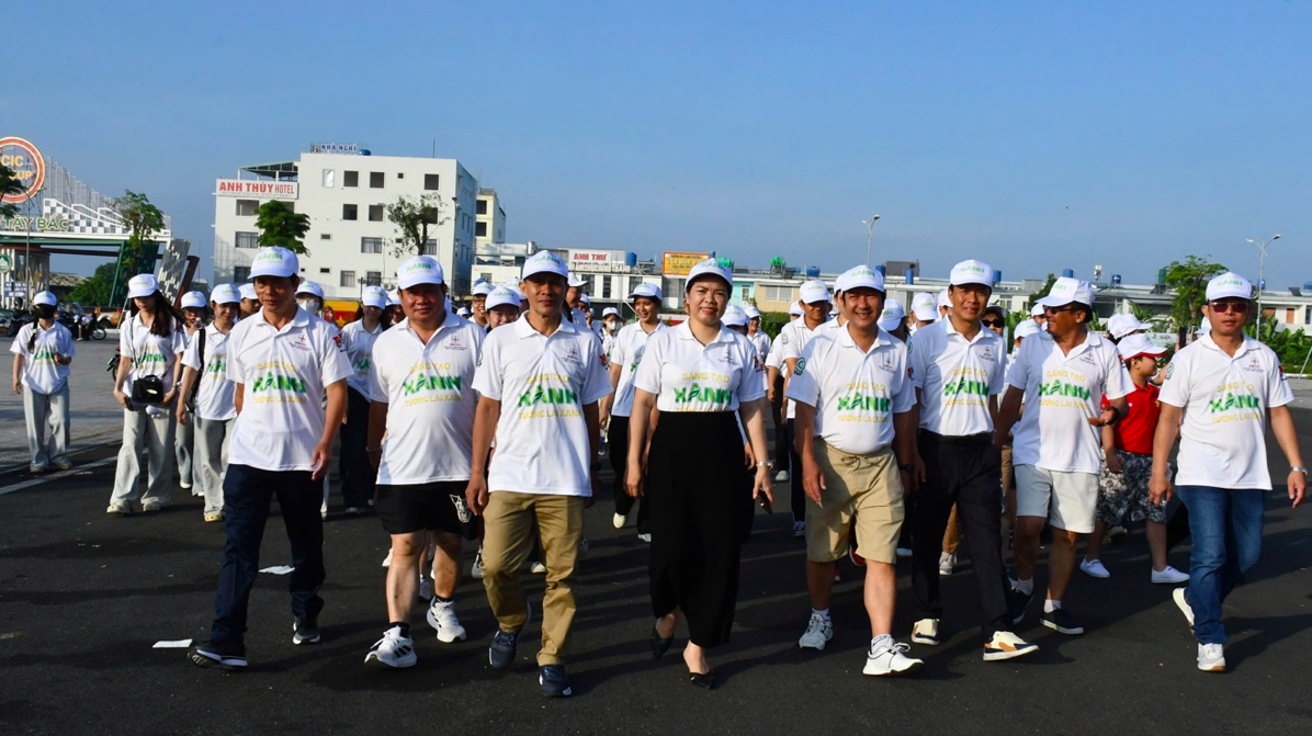 CBCNV Công ty Điện lực An Giang và người dân trên địa bàn tỉnh đi bộ hưởng ứng Chiến dịch Giờ Trái đất 2026. (Ảnh: PC An Giang)