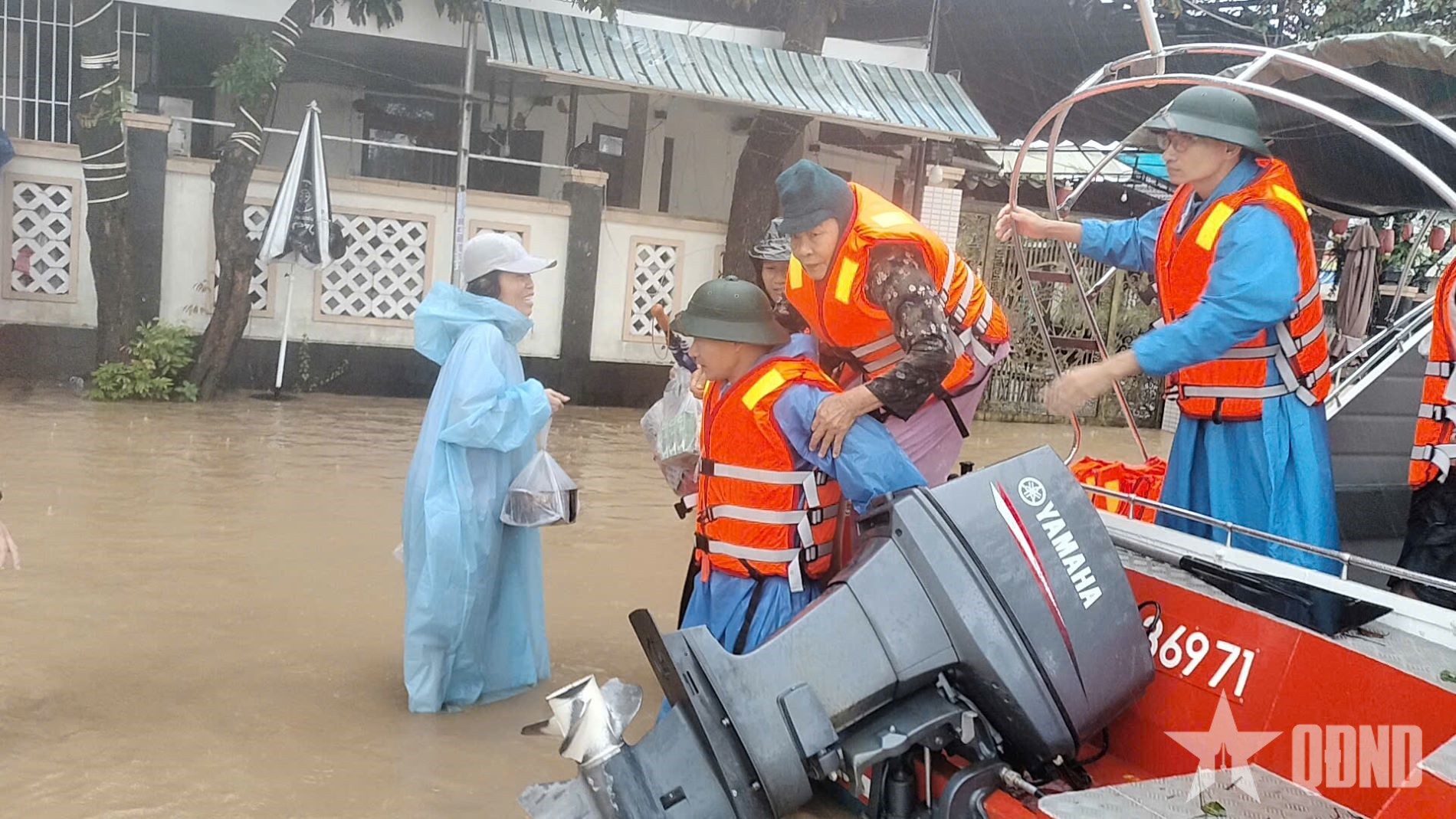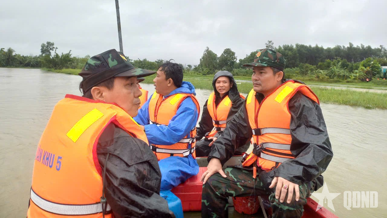 Chiều 27-10, cán bộ, chiến sĩ Ban chỉ huy Phòng thủ khu vực 5 - Điện Bàn (Bộ CHQS TP Đà Nẵng) khẩn trương phối hợp cùng lực lượng dân quân, công an, đoàn thể địa phương tổ chức di dời, đưa bà Trương Thị Mai (82 tuổi), trú ở thôn Nghĩa Mỹ, xã Đại Lộc (TP Đà Nẵng) đến nơi an toàn. Mặc dù thời tiết mưa to, nước dâng nhanh, song với tinh thần “Vì nhân dân phục vụ”, lực lượng tham gia đã vượt qua khó khăn, tiếp cận nhà dân bị cô lập, đưa bà Mai ra khỏi vùng ngập sâu, đồng thời hỗ trợ gia đình di chuyển đồ đạc thiết yếu, đảm bảo an toàn tính mạng và tài sản.