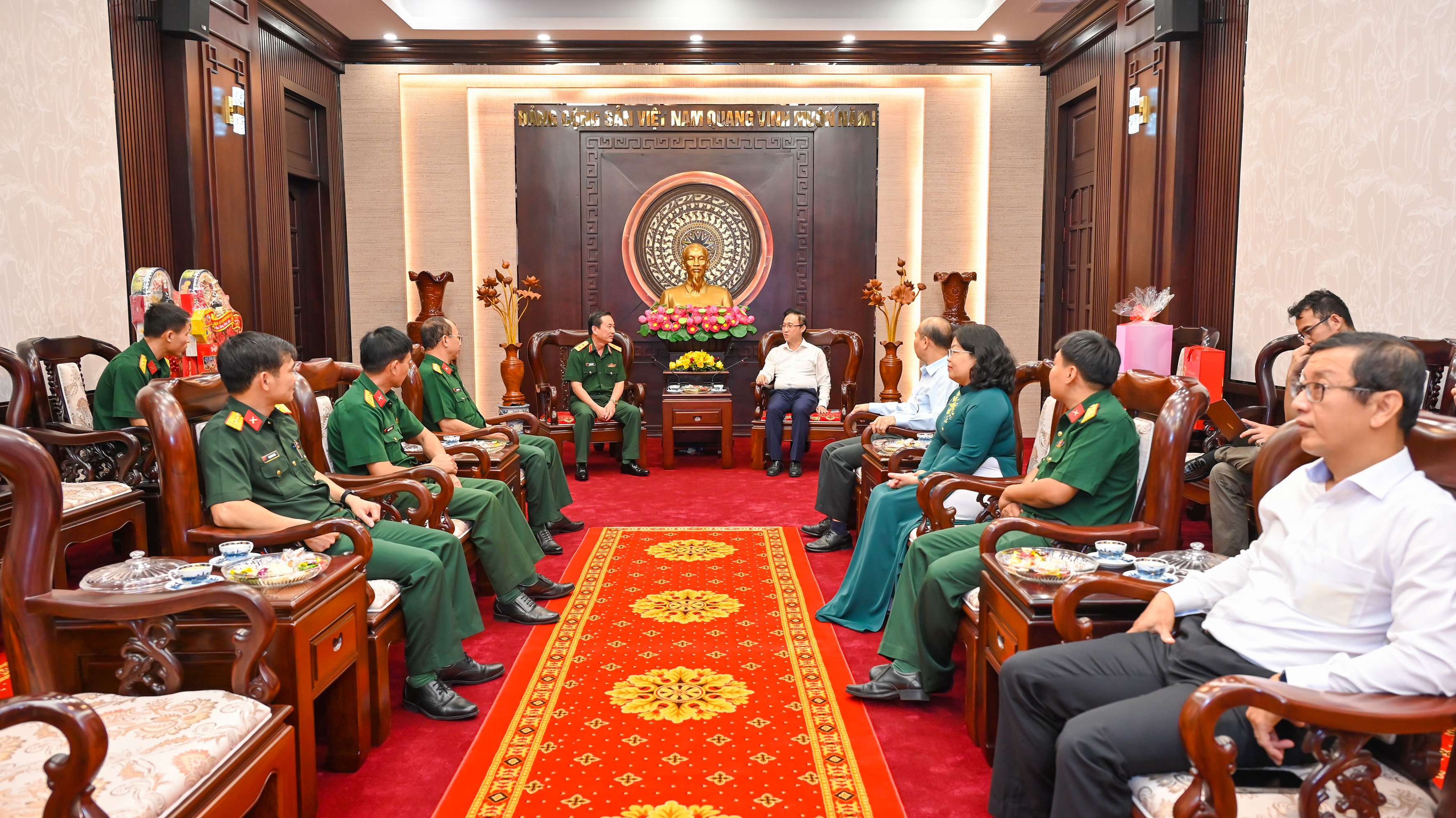 Đồng chí Đặng Minh Thông, Phó Bí thư Thành ủy TPHCM (bìa phải) chủ trì buổi tiếp đoàn công tác của Bộ Tư lệnh Quân đoàn 34
