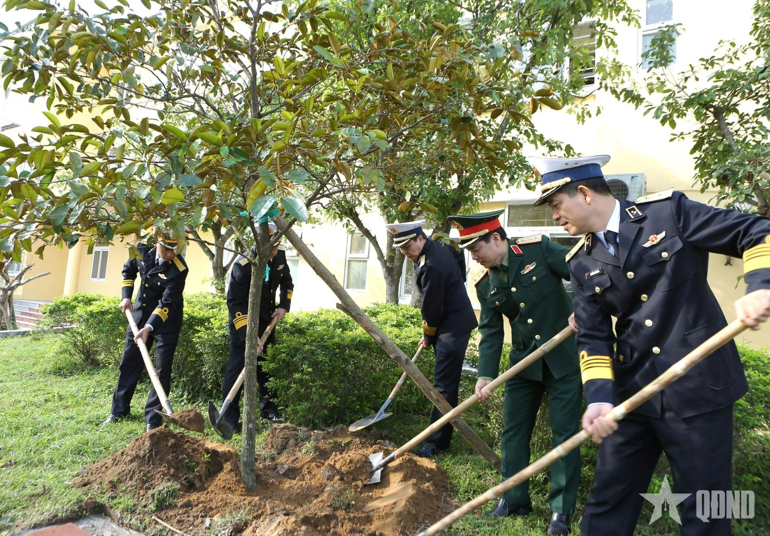 Thượng tướng Đỗ Xuân Tụng và các đại biểu trồng cây lưu niệm tại Hải đội 137.