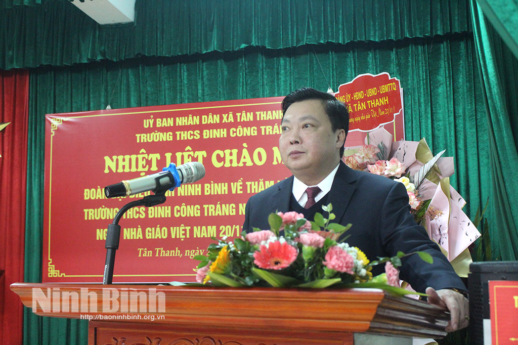 Phát biểu chúc mừng nhà trường, đồng chí Phạm Hùng Thắng, Tỉnh ủy viên, Phó Trưởng Đoàn đại biểu Quốc hội tỉnh ghi nhận và biểu dương những thành tích mà tập thể thầy, trò Trường THCS Đinh Công Tráng đã đạt được trong thời gian qua.