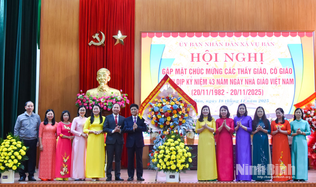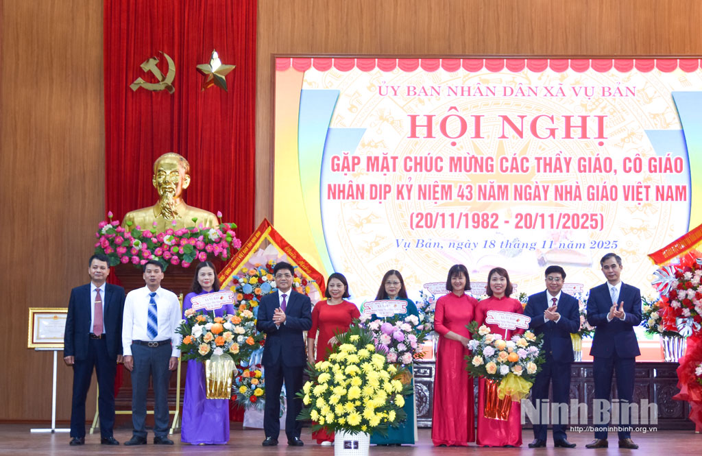 Phát biểu tại lễ kỷ niệm, đồng chí Trần Minh Hoan, Tỉnh ủy viên, Bí thư Đảng ủy, Chủ tịch HĐND xã Vụ Bản đã biểu dương thành tích, ghi nhận sự đóng góp của các nhà trường và các nhà giáo của ngành Giáo dục và Đào tạo xã; trân trọng cảm ơn toàn thể đội ngũ cán bộ, giáo viên, nhân viên ngành Giáo dục và Đào tạo đã và đang góp phần vào thành tích chung của ngành. Đồng chí mong muốn mỗi thầy, cô không ngừng học tập, rèn luyện, nâng cao chuyên môn nghiệp vụ; ứng dụng linh hoạt công nghệ trong giảng dạy; giữ gìn phẩm chất đạo đức, tác phong mẫu mực - xứng đáng là tấm gương sáng cho học sinh noi theo. Các nhà trường tiếp tục xây dựng môi trường sáng - xanh - sạch - đẹp; bảo đảm an toàn trường học; chú trọng giáo dục nhân cách, kỹ năng sống, khơi dậy tinh thần tự học, sáng tạo của học sinh; phát hiện, bồi dưỡng và lan tỏa các mô hình hay, cách làm sáng tạo; tôn vinh các nhà giáo tiêu biểu và tạo môi trường để các thầy cô phát huy năng lực, cống hiến cho ngành giáo dục.