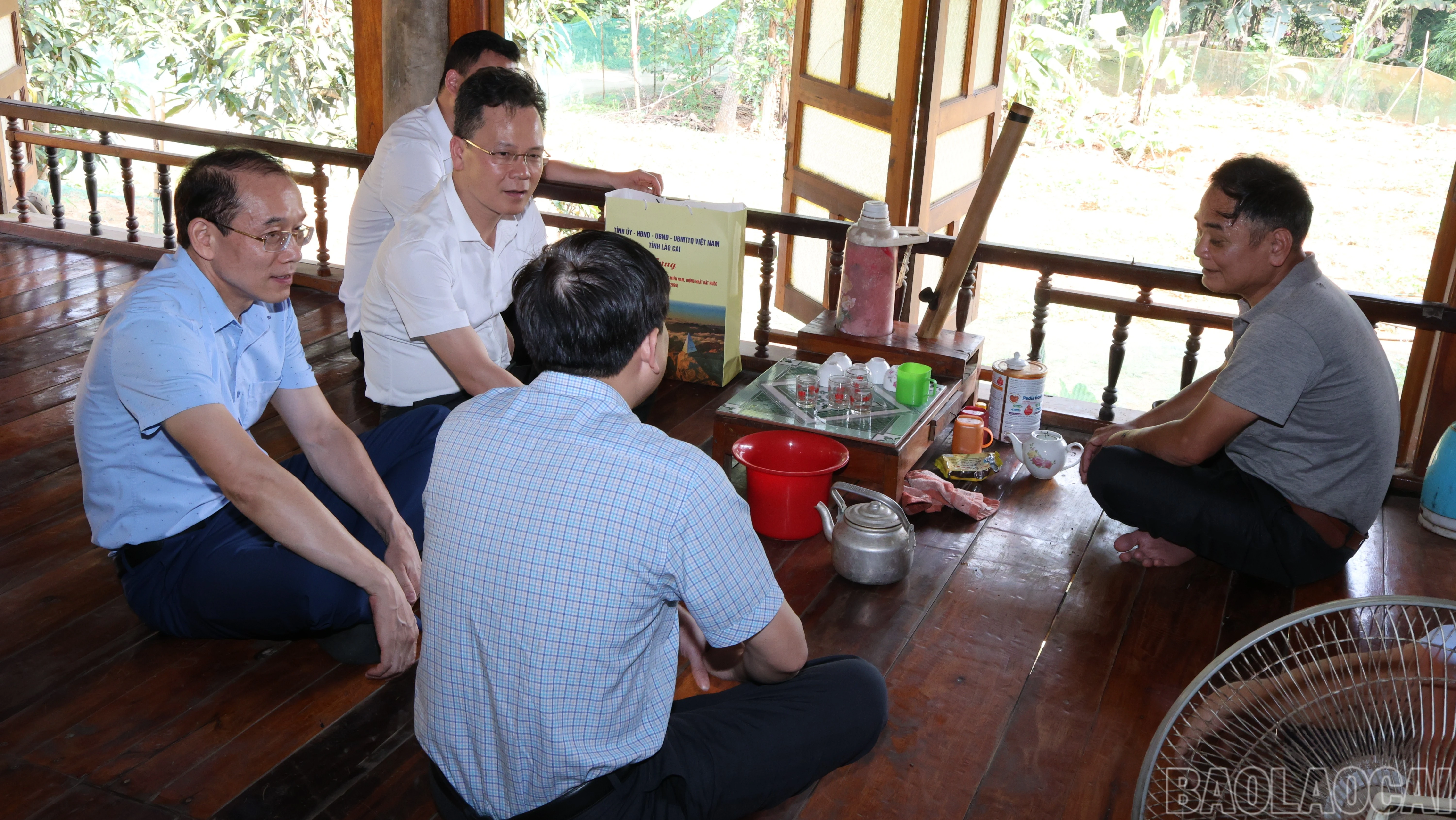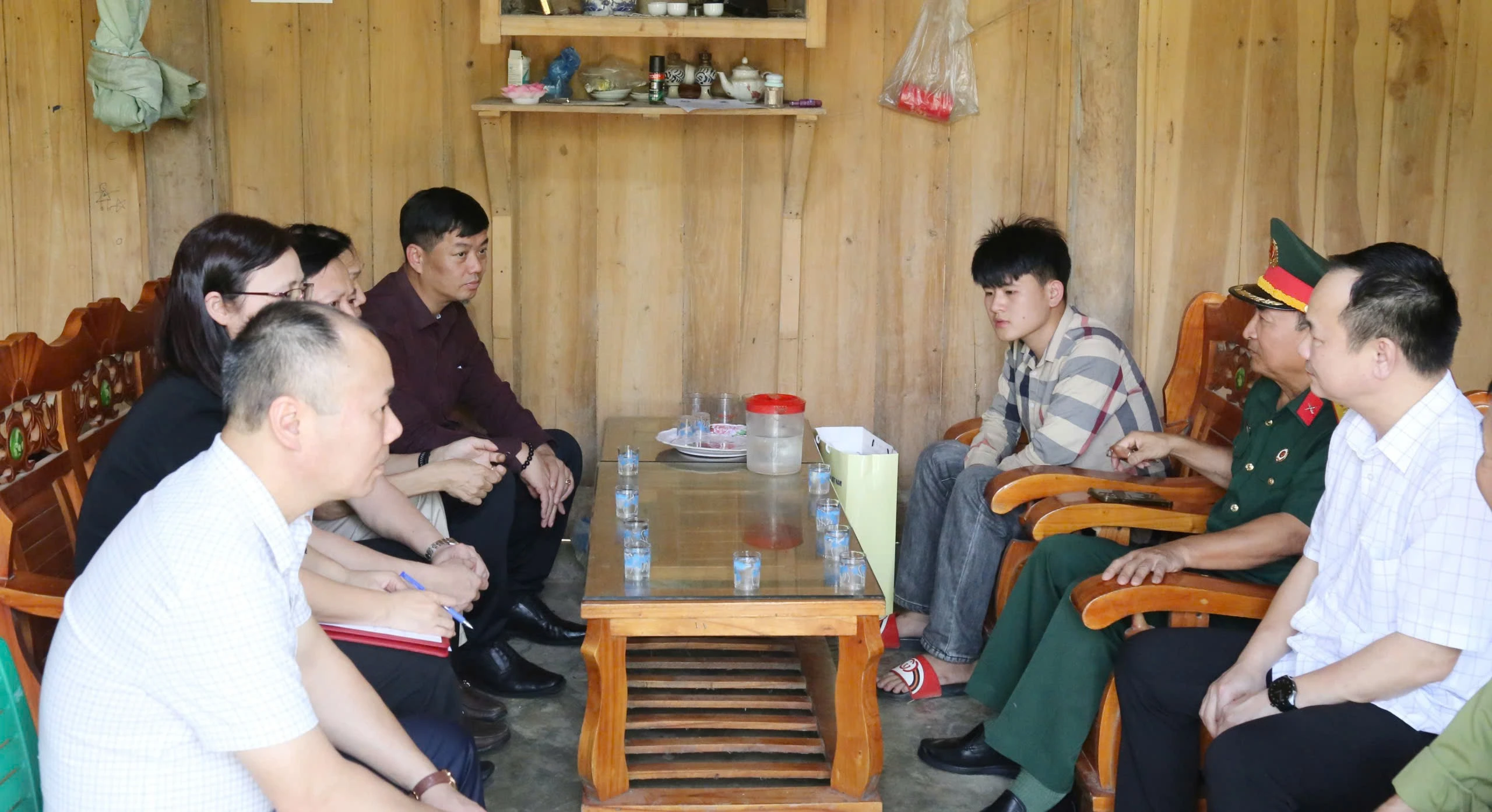 Đồng chí Phó Chủ tịch UBND tỉnh chia sẻ, động viên với các gia đình đến thăm.