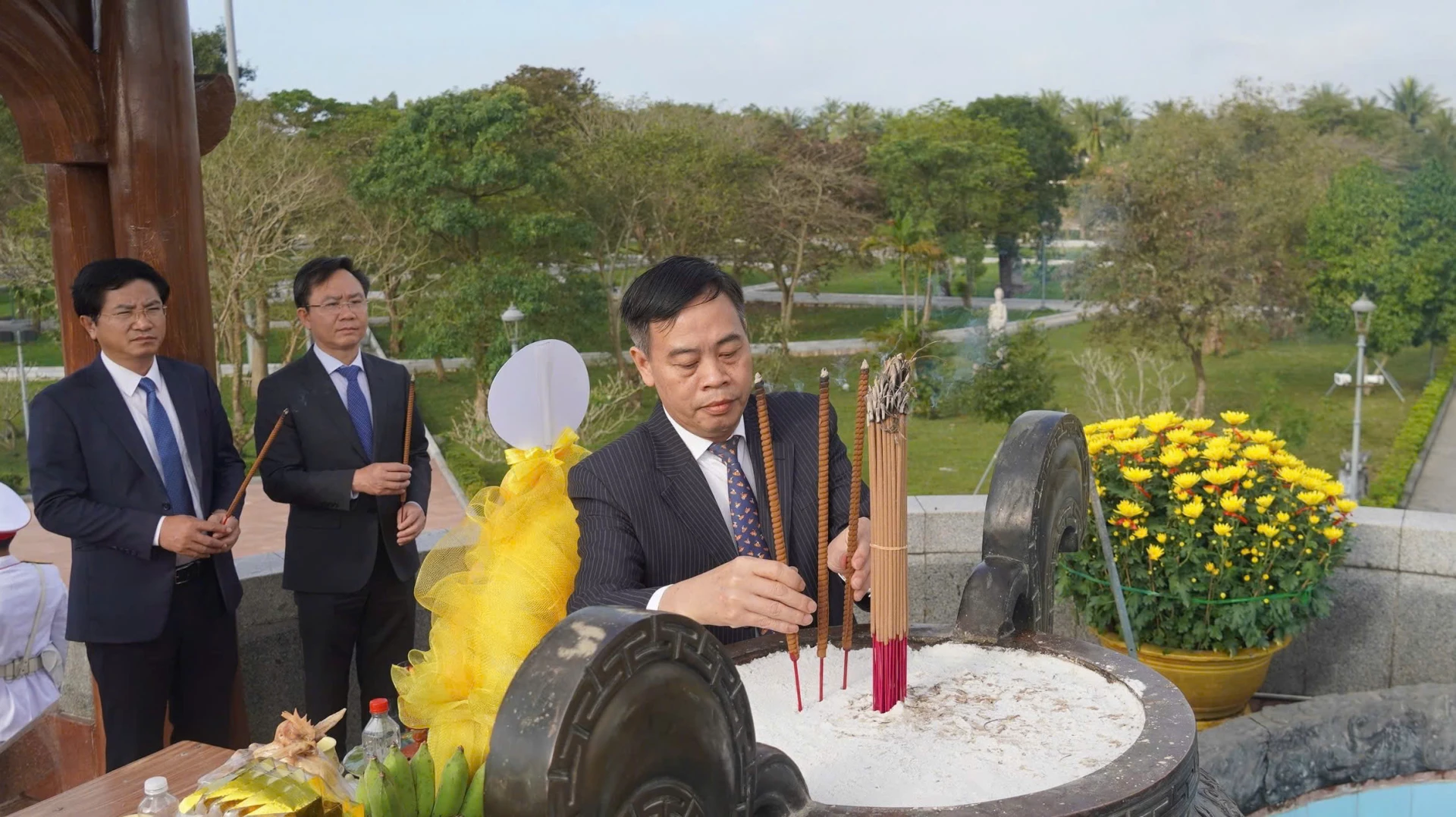 Các đồng chí lãnh đạo tỉnh dâng hương tại Di tích quốc gia đặc biệt Thành Cổ Quảng Trị - Ảnh: M.N