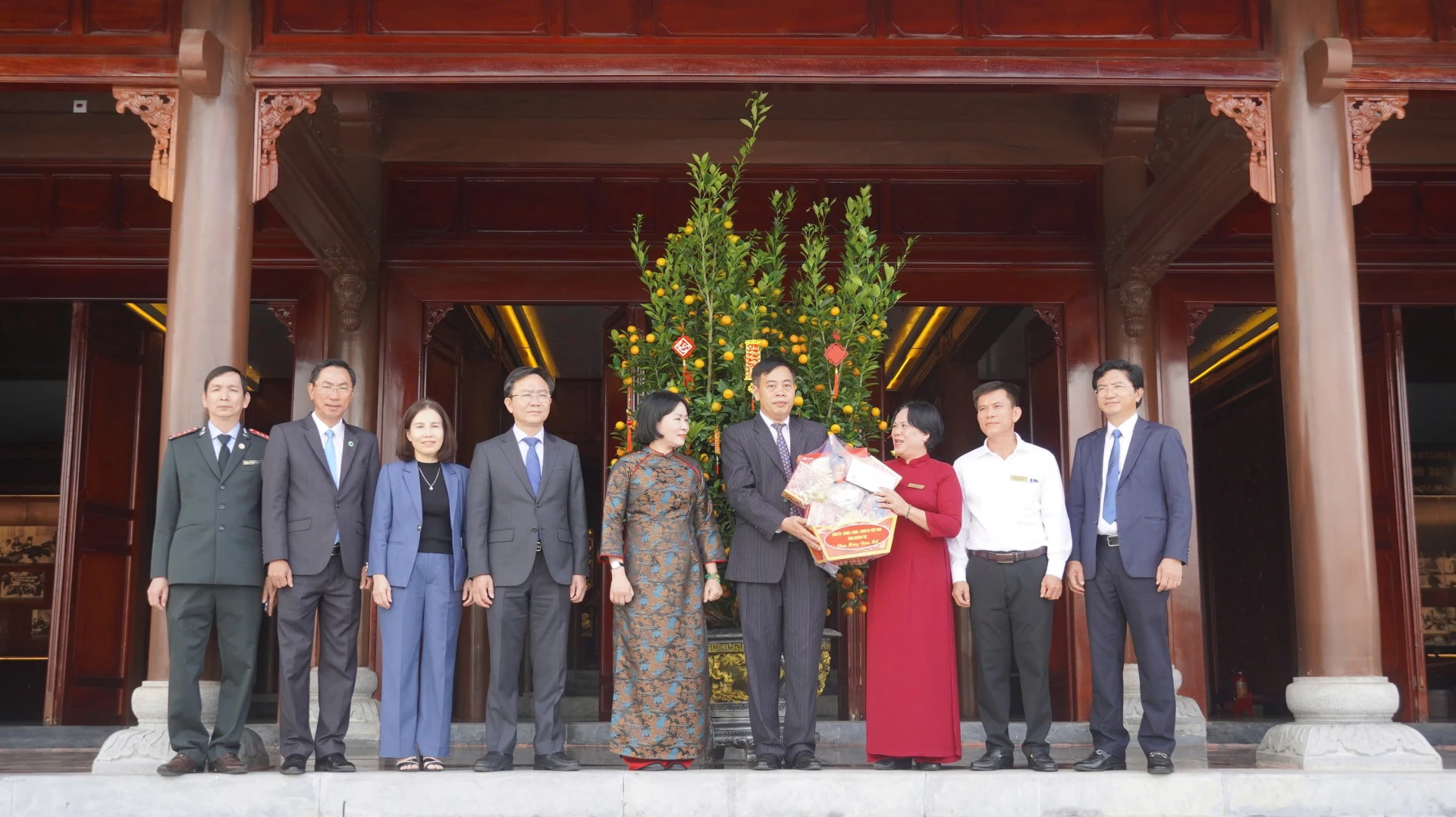 Đồng chí Nguyễn Đăng Quang, Phó Bí thư Tỉnh ủy, Chủ tịch HĐND tỉnh tặng quà, chúc Tết Ban Quản lý Khu lưu niệm Tổng Bí thư Lê Duẩn và Thành Cổ Quảng Trị - Ảnh: M.N
