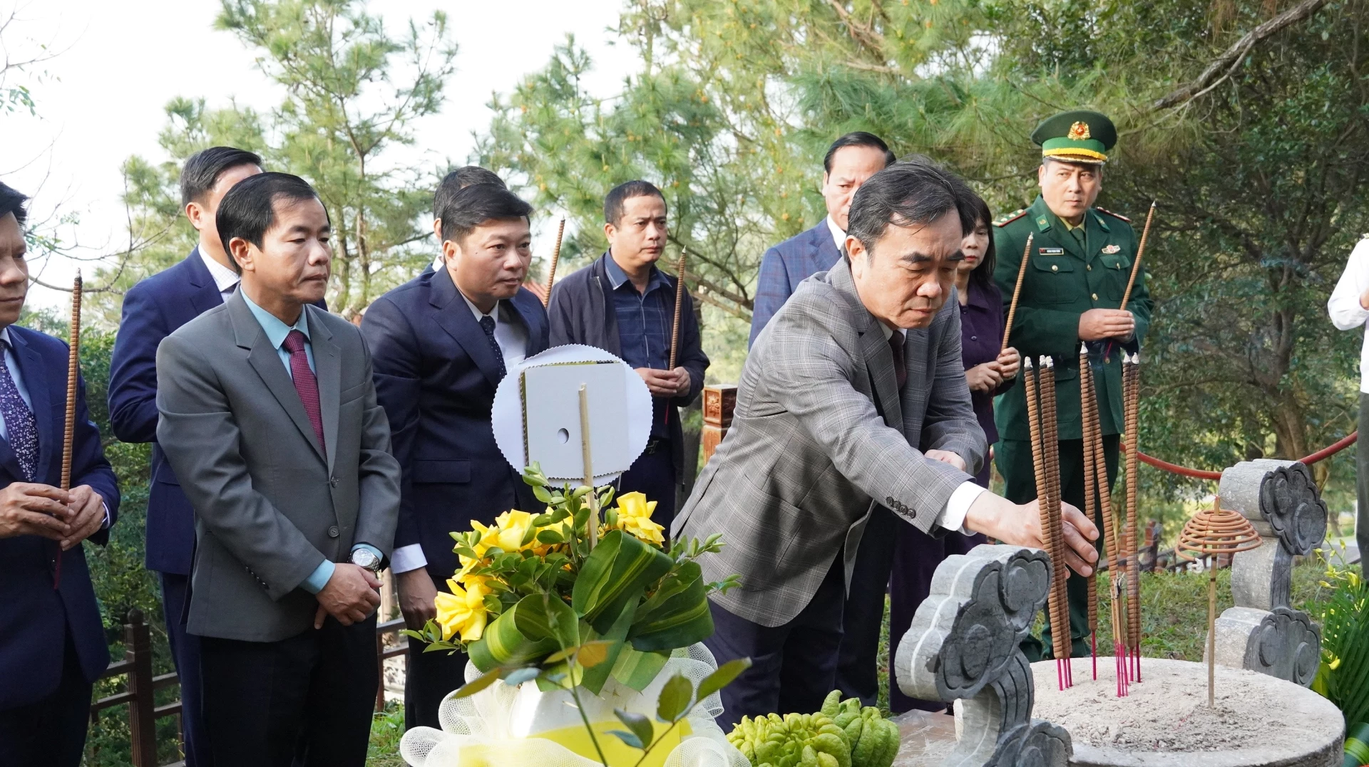Đồng chí Lê Hồng Vinh, Chủ tịch UBND tỉnh dâng hương lên phần mộ Đại tướng Võ Nguyên Giáp - Ảnh: Q.V