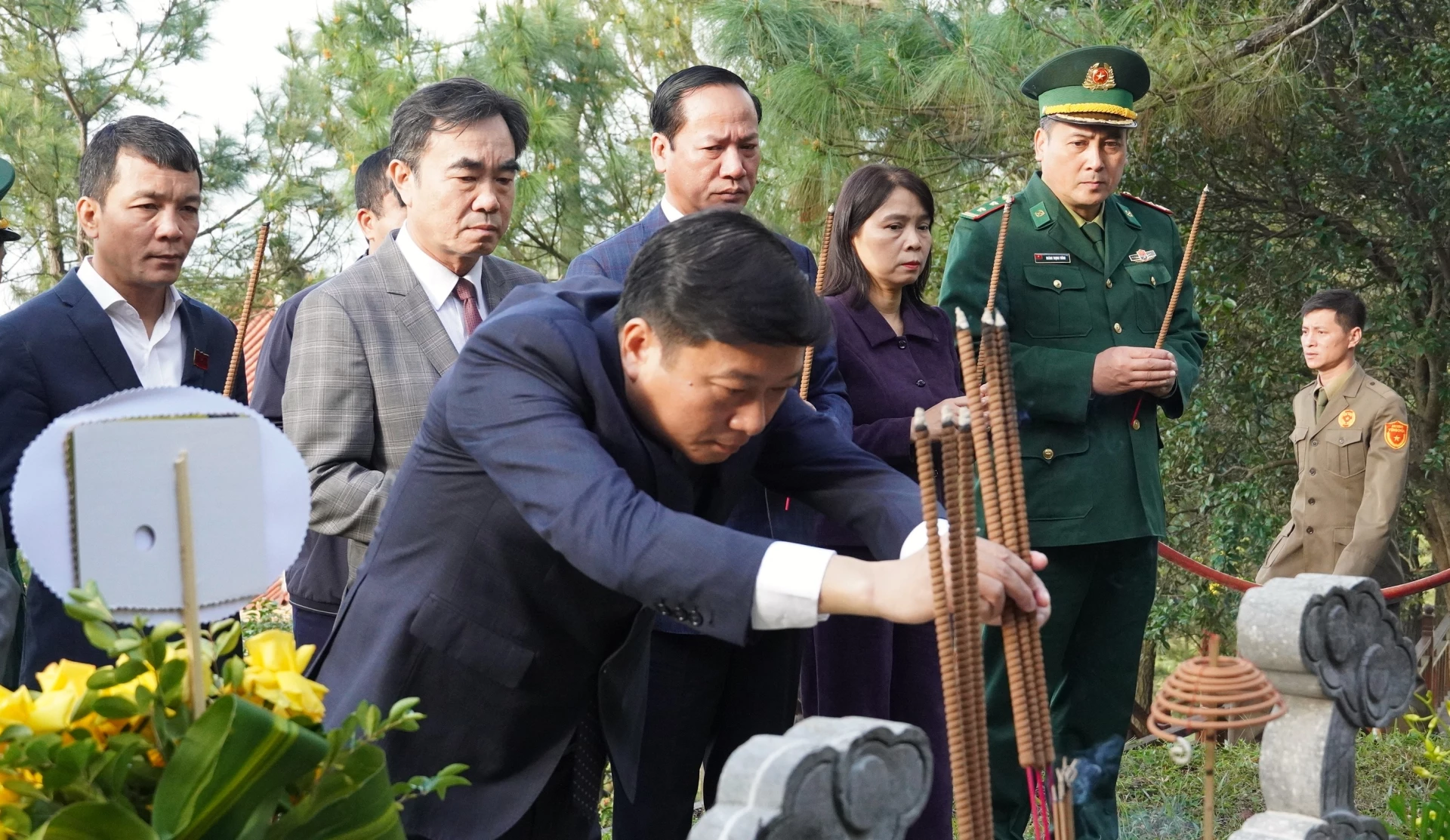 Trong không khí trang nghiêm và thành kính, các đồng chí lãnh đạo tỉnh đã kính cẩn đặt vòng hoa, dâng nén hương thơm lên phần mộ Đại tướng Võ Nguyên Giáp, đồng thời dành phút mặc niệm để bày tỏ lòng thành kính, tri ân sâu sắc đối với công lao to lớn của Đại tướng-người học trò xuất sắc và gần gũi của Chủ tịch Hồ Chí Minh, người Anh cả của Quân đội nhân dân Việt Nam, người con ưu tú của quê hương Quảng Trị.