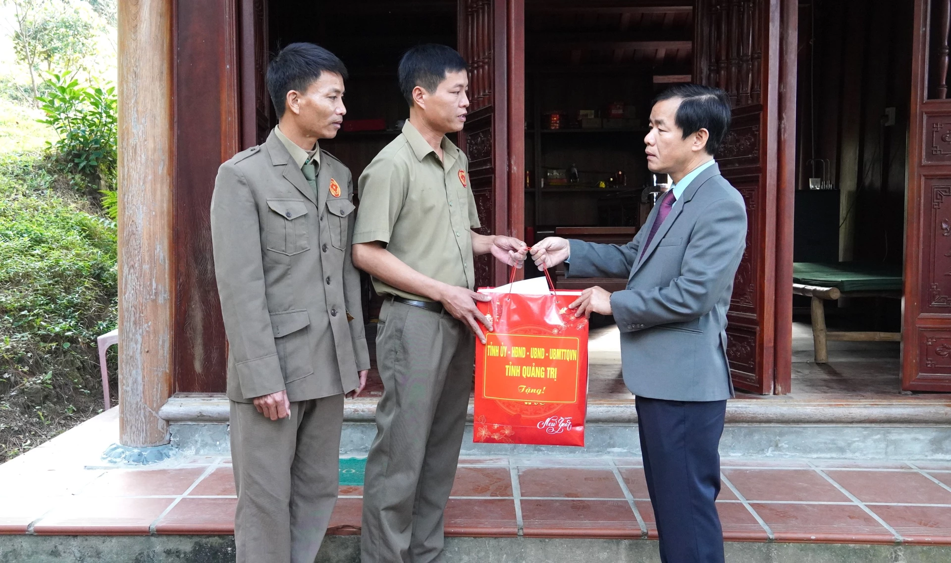 Đồng chí Nguyễn Văn Phương, Bí thư Tỉnh ủy tặng quà cho Đội an ninh Vũng Chùa - Ảnh: Q.V
