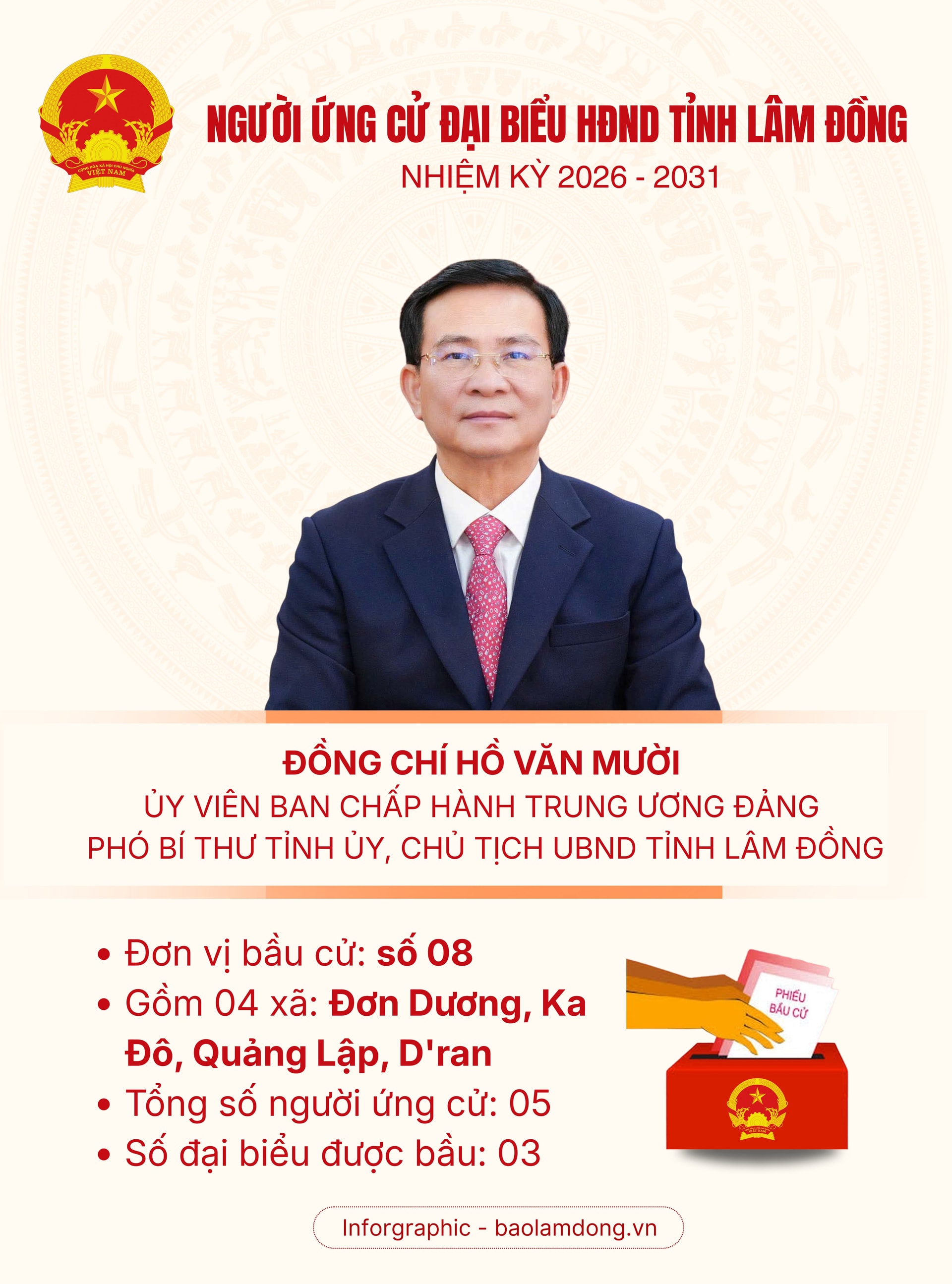 Xem chi tiết Danh sách những người ứng cử đại biểu HĐND tỉnh Lâm Đồng nhiệm kỳ 2026 - 2031 ở Đơn vị bầu cử số 08 tại đây.