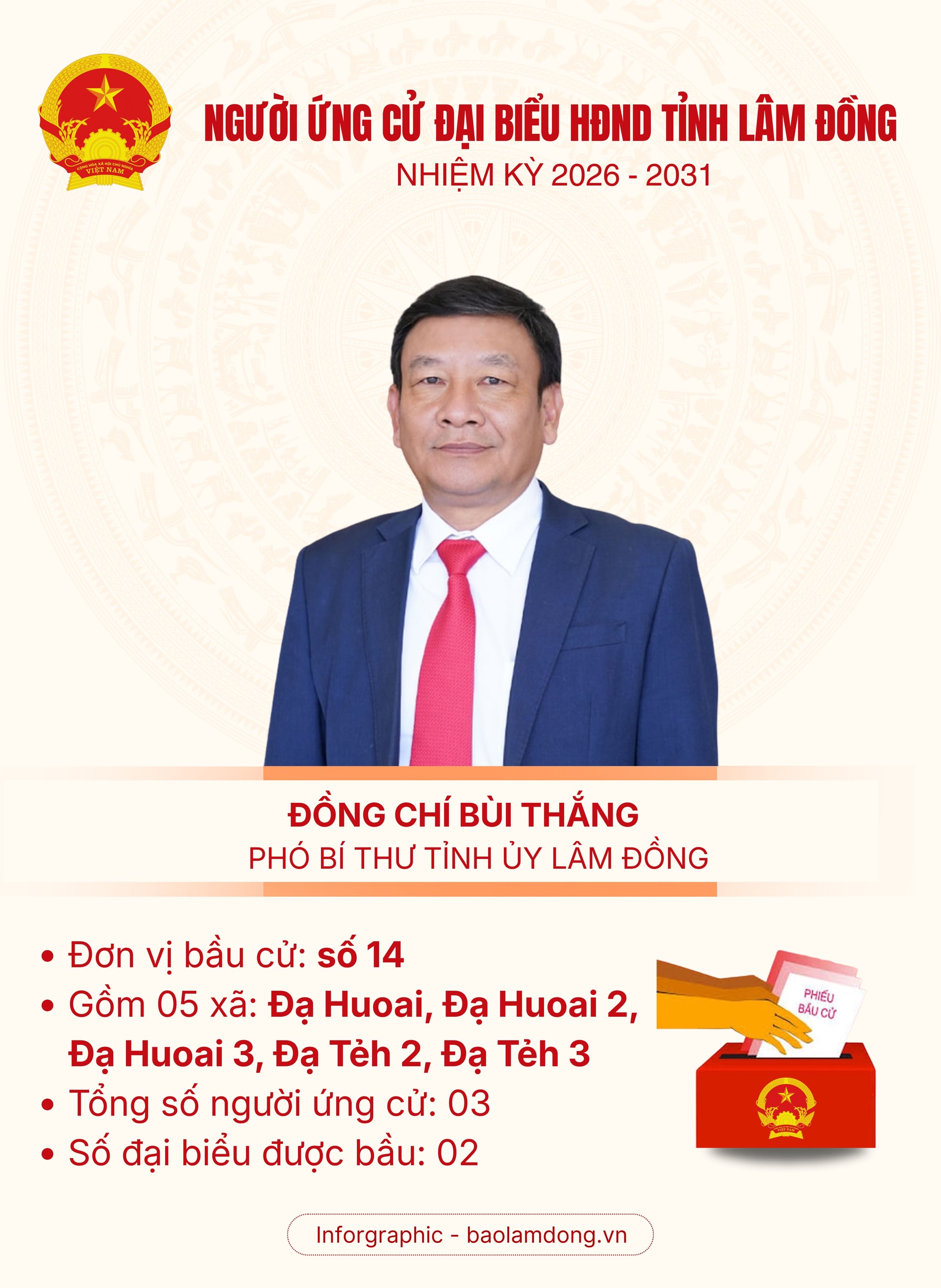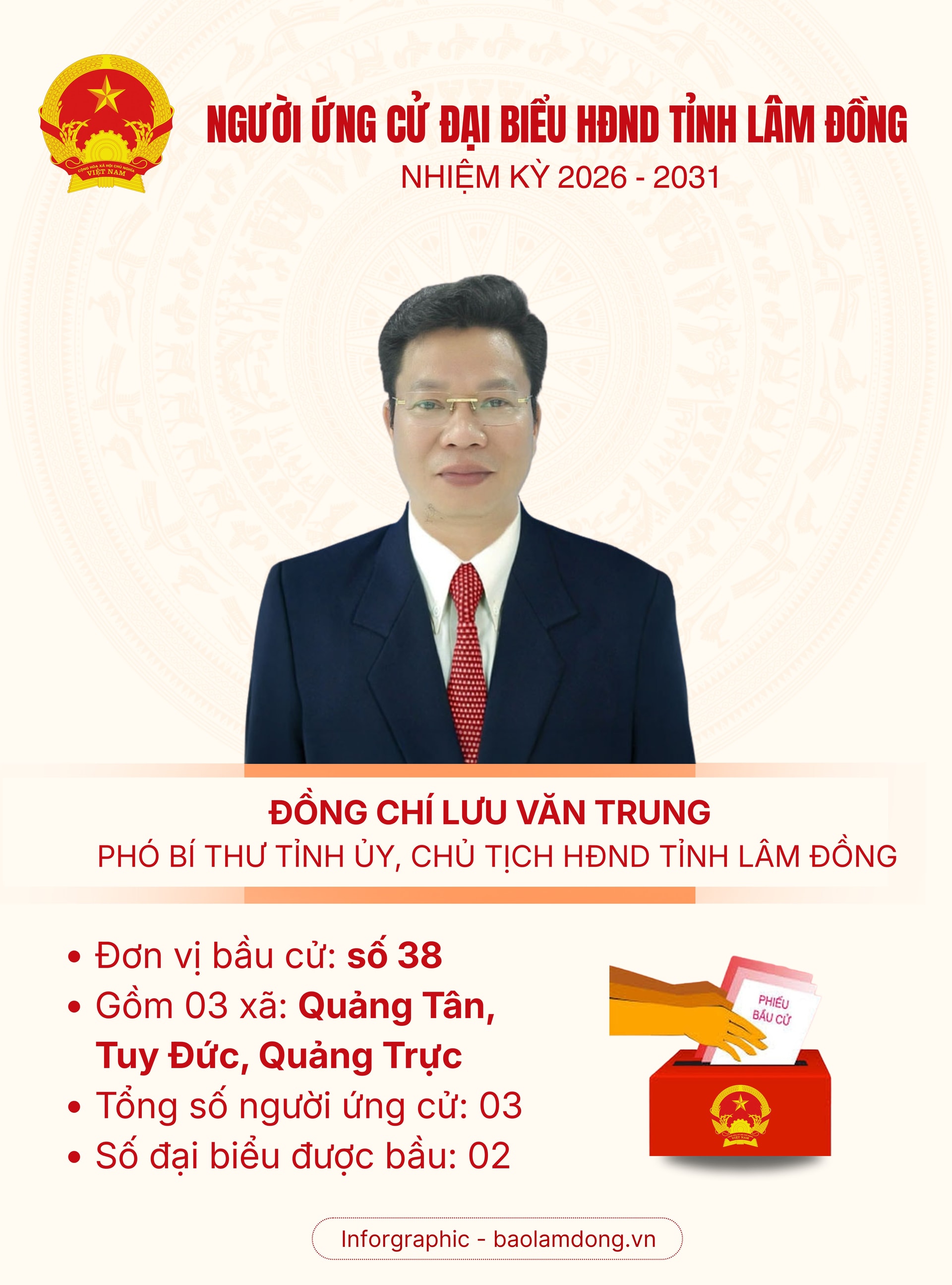 Xem chi tiết Danh sách những người ứng cử đại biểu HĐND tỉnh Lâm Đồng nhiệm kỳ 2026 - 2031 ở Đơn vị bầu cử số 38 tại đây.