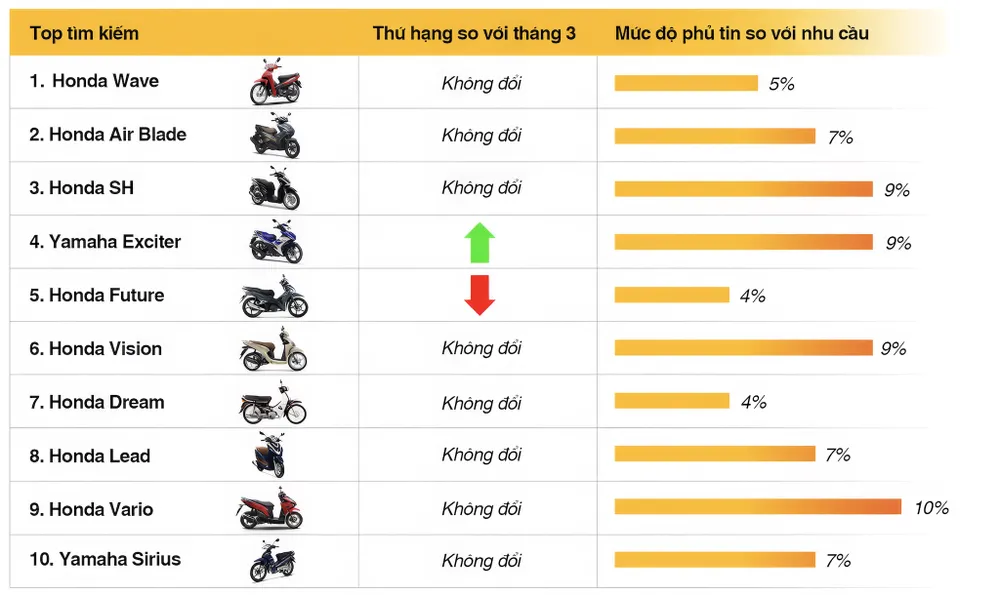 So với ô tô, thị trường xe máy trong tháng 4 vẫn duy trì sự ổn định như tháng 3, đặc biệt là với những dòng xe cũ phổ biến với người Việt.