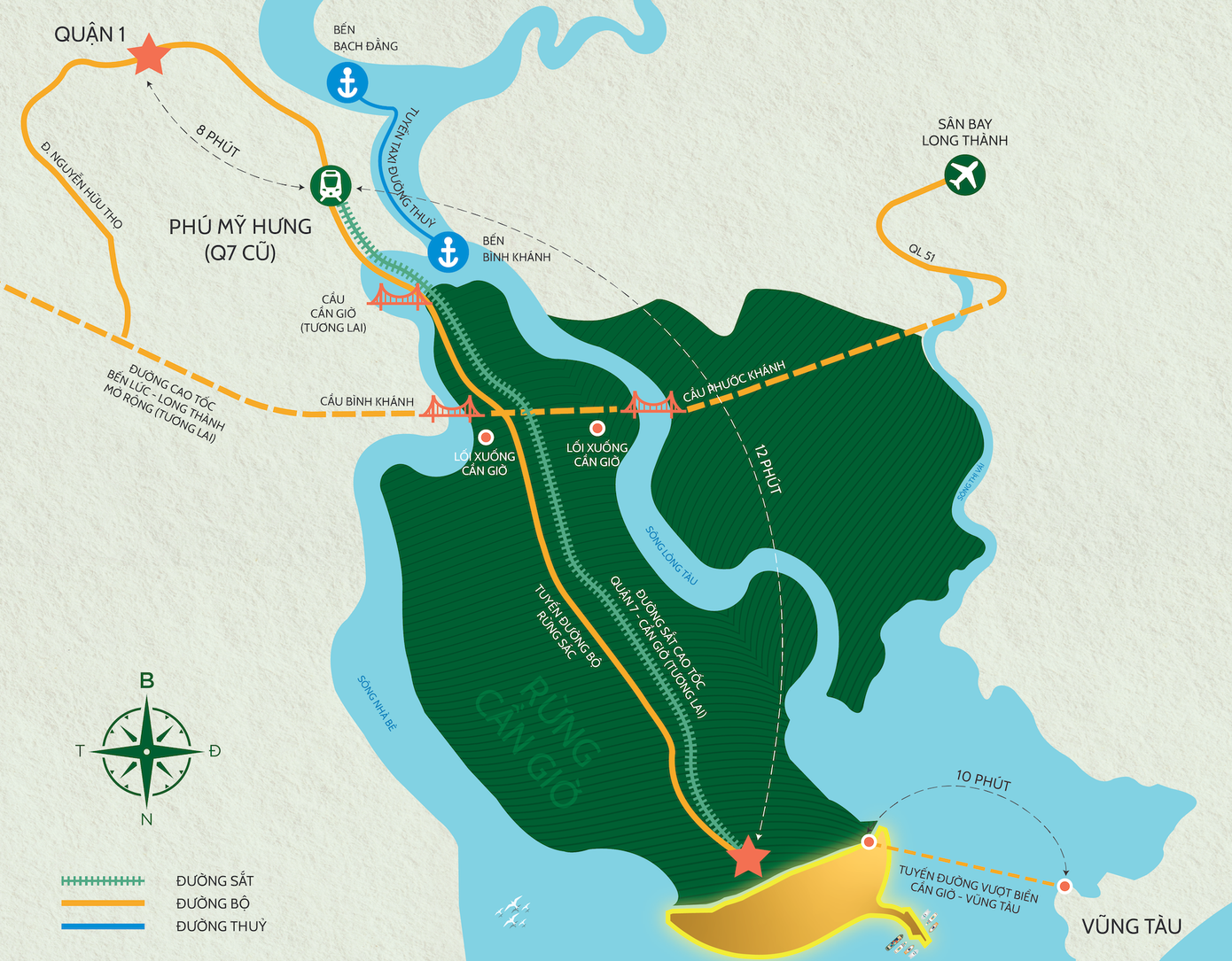 Hướng tuyến metro kết nối trung tâm TPHCM đến Cần Giờ.
