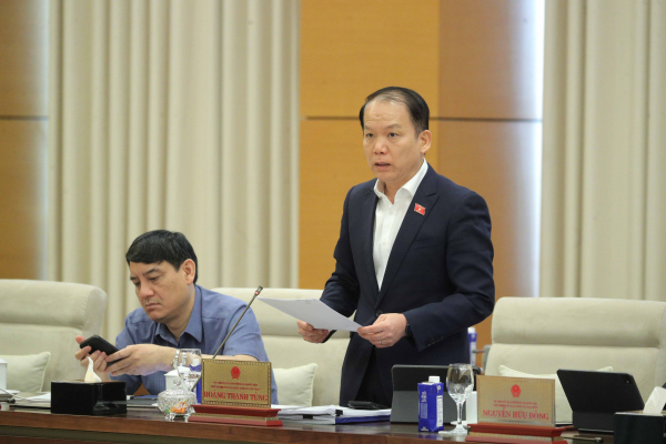 Chủ nhiệm Ủy ban Pháp luật và Tư pháp Hoàng Thanh Tùng trình bày báo cáo thẩm tra.