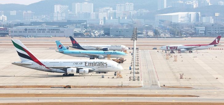 Các máy bay chở khách tại Sân bay Quốc tế Incheon, Hàn Quốc. Ảnh: Yonhap
