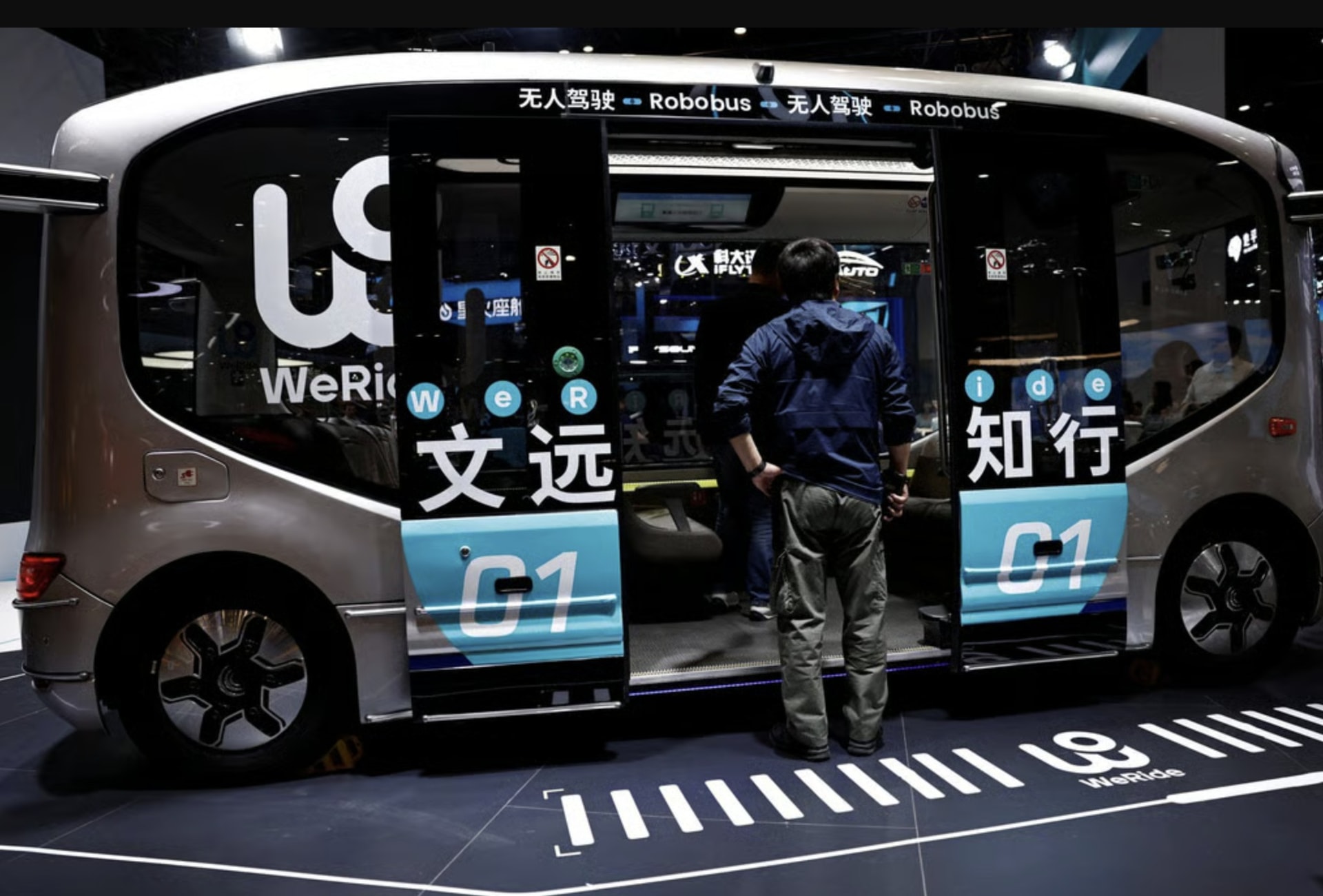 Chiếc xe buýt tự lái WeRide tại Triển lãm Ô tô Bắc Kinh - Ảnh: Reuters