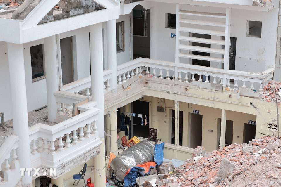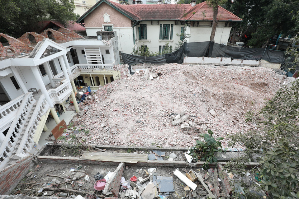 Một phần dự án công viên phía đông hồ Hoàn Kiếm đã được phá dỡ. (Ảnh: Lê Đông/TTXVN)