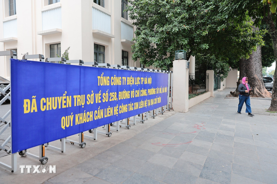 Tổng công ty Điện lực Hà Nội thông báo về việc chuyển trụ sở sang đường Võ Chí Công. (Ảnh: Lê Đông/TTXVN)