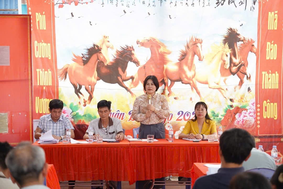 Phó Chủ tịch UBND xã Thường Tín Uông Thị Phượng tiếp thu ý kiến, kiến nghị của đại diện các hộ gia đinh. Ảnh: PV