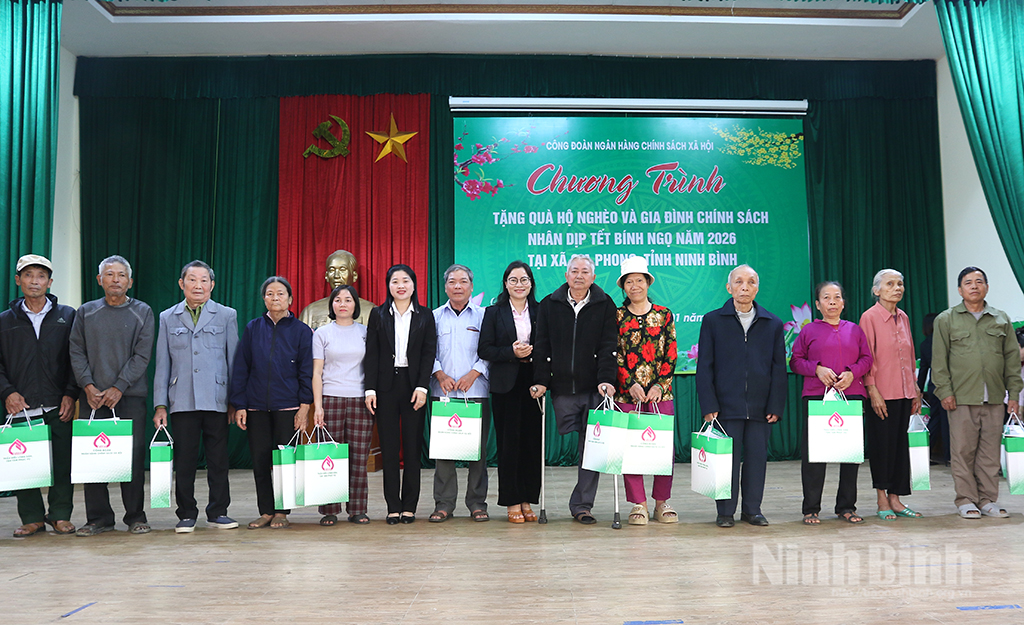 * Ngày 29/1, Công đoàn Ngân hàng Chính sách xã hội (NHCSXH) Việt Nam tổ chức chương trình trao quà Tết “Vì người nghèo” Xuân Bính Ngọ 2026 cho hộ nghèo, cận nghèo, gia đình chính sách ở xã Thanh Liêm và xã Gia Phong.