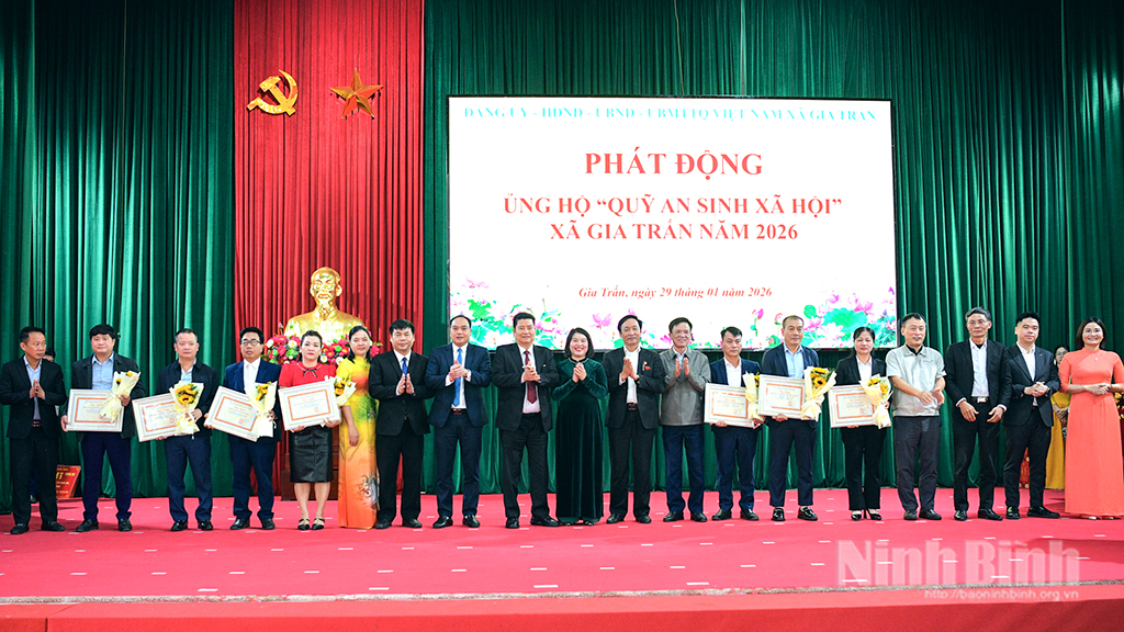 * Ngày 29/11, Đảng ủy, HĐND, UBND, Ủy ban MTTQ Việt Nam xã Gia Trấn đã tổ chức lễ phát động ủng hộ “Quỹ An sinh xã hội” năm 2026. Dự buổi lễ có lãnh đạo Hiệp hội Doanh nghiệp tỉnh; lãnh đạo xã Gia Trấn; đại diện một số doanh nghiệp, doanh nhân đang hoạt động trên địa bàn.