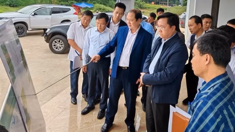 Chủ tịch Ủy ban nhân dân tỉnh Phú Thọ Trần Duy Đông và Trưởng ban Quản lý các Khu công nghiệp tỉnh Phú Thọ khảo sát dự án Khu công nghiệp Đoan Hùng.