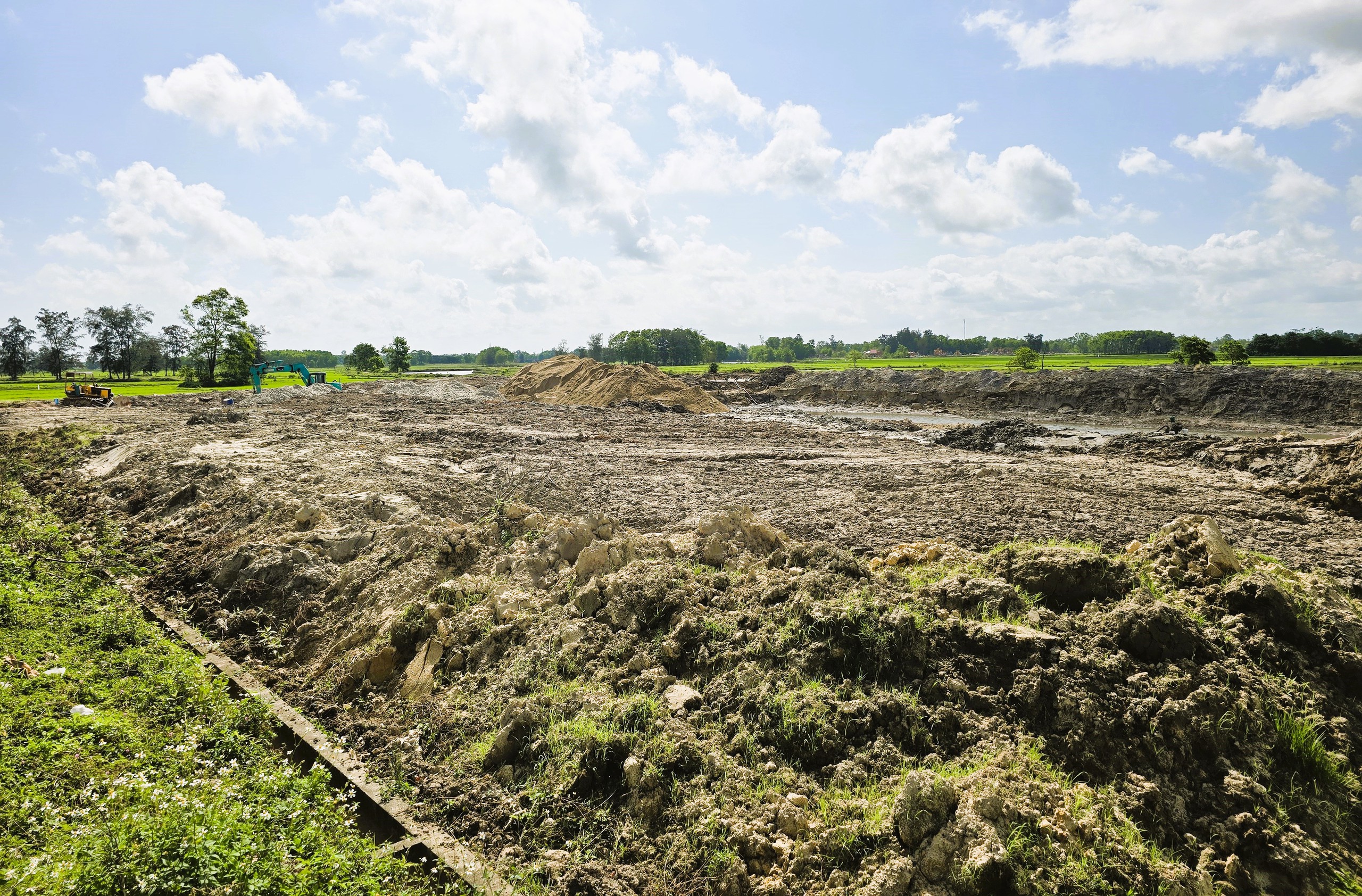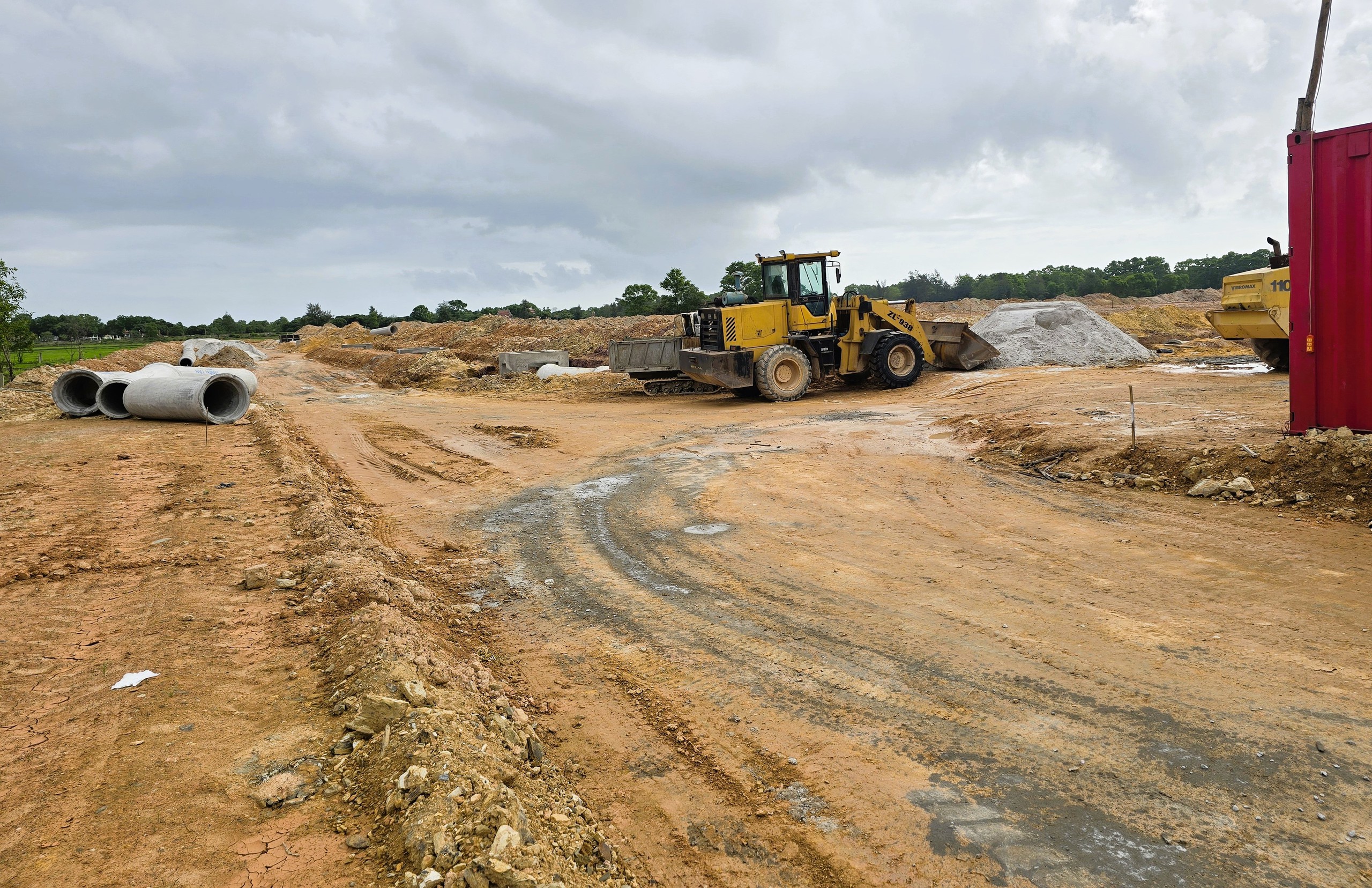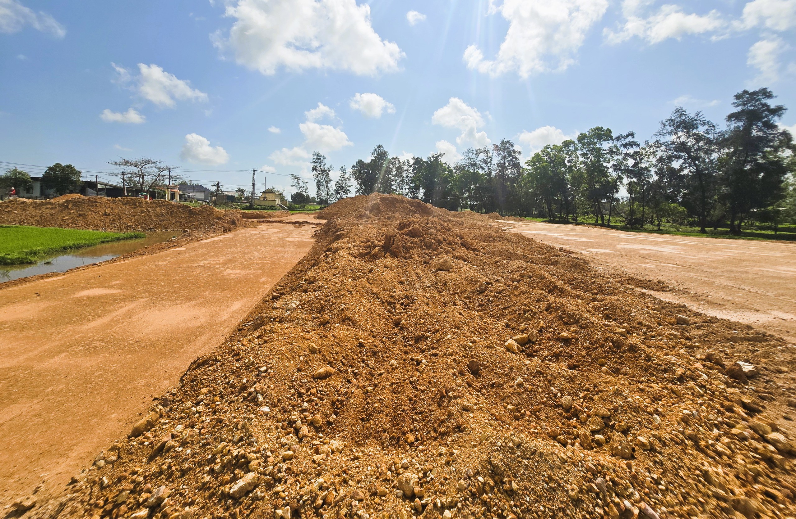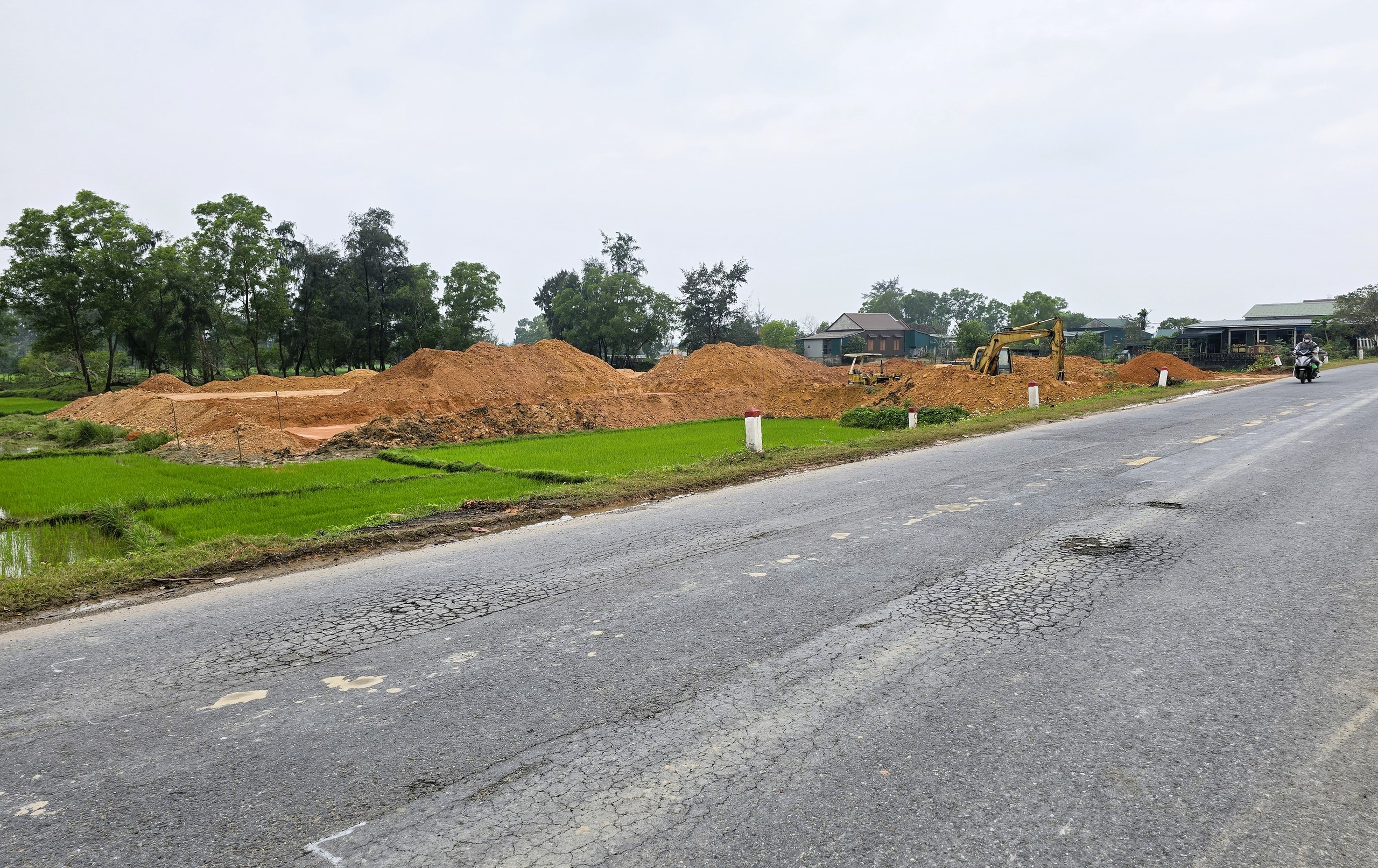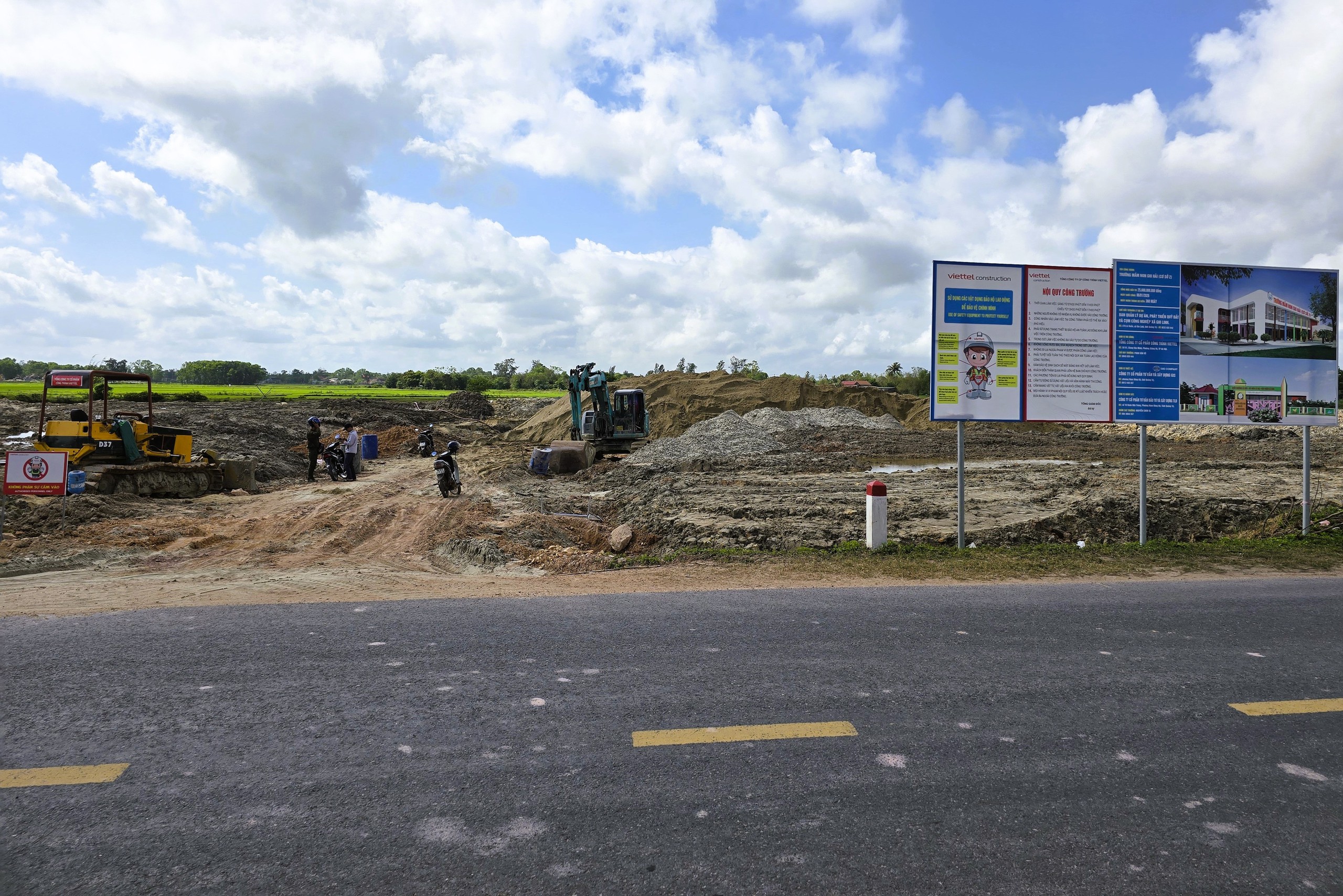 Tại khu vực khu tái định cư Gio Hải (0,29ha), xã Cửa Việt bên tuyến đường tỉnh lộ 575A cũng không có bảng thông tin gì về công trình. Tại đây, sau khi đổ đất san nền nhà thầu đã đào đất lên thi công nền đường ngổn ngang, công trường hiện cũng đang vắng bóng thi công.