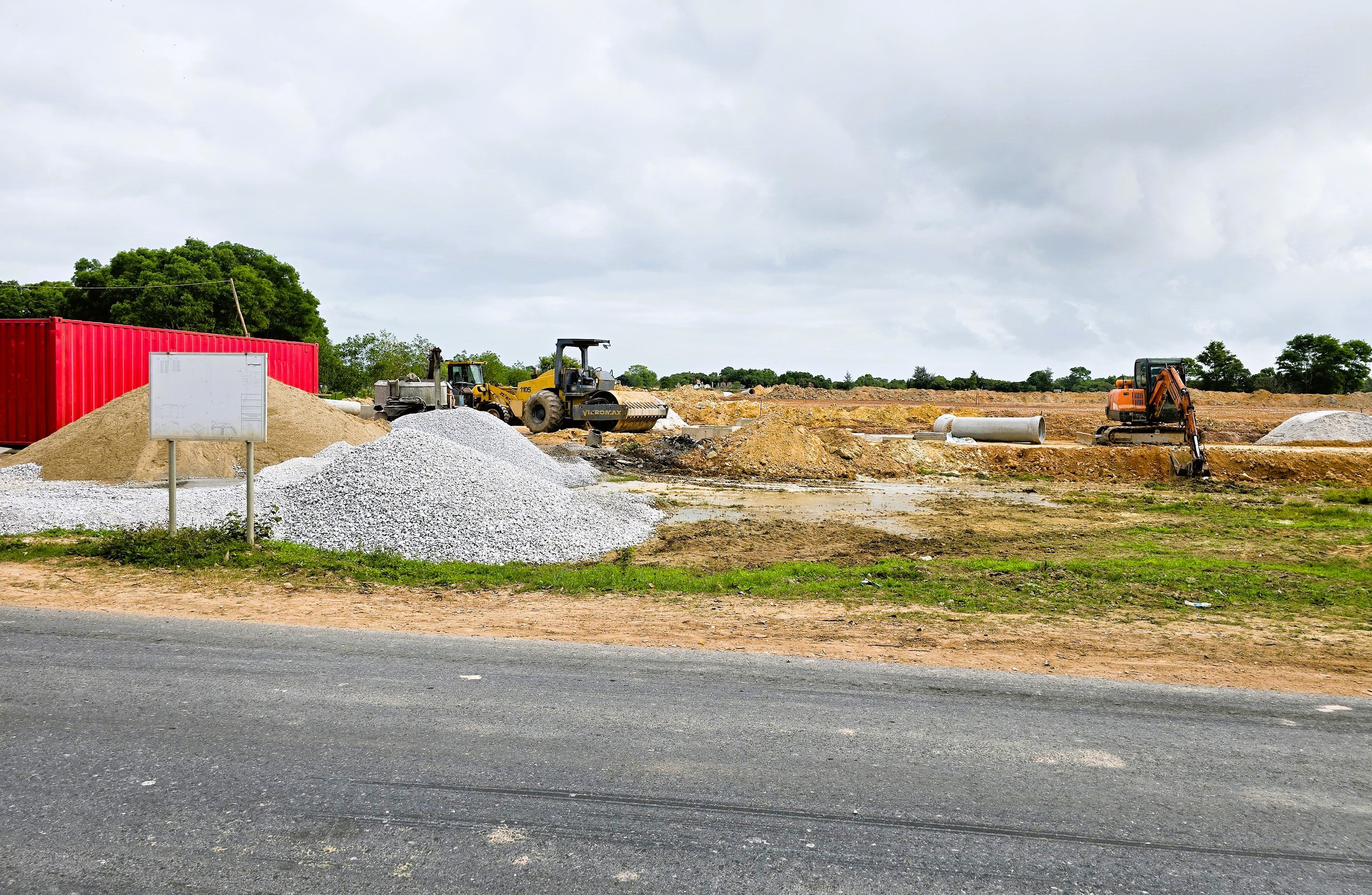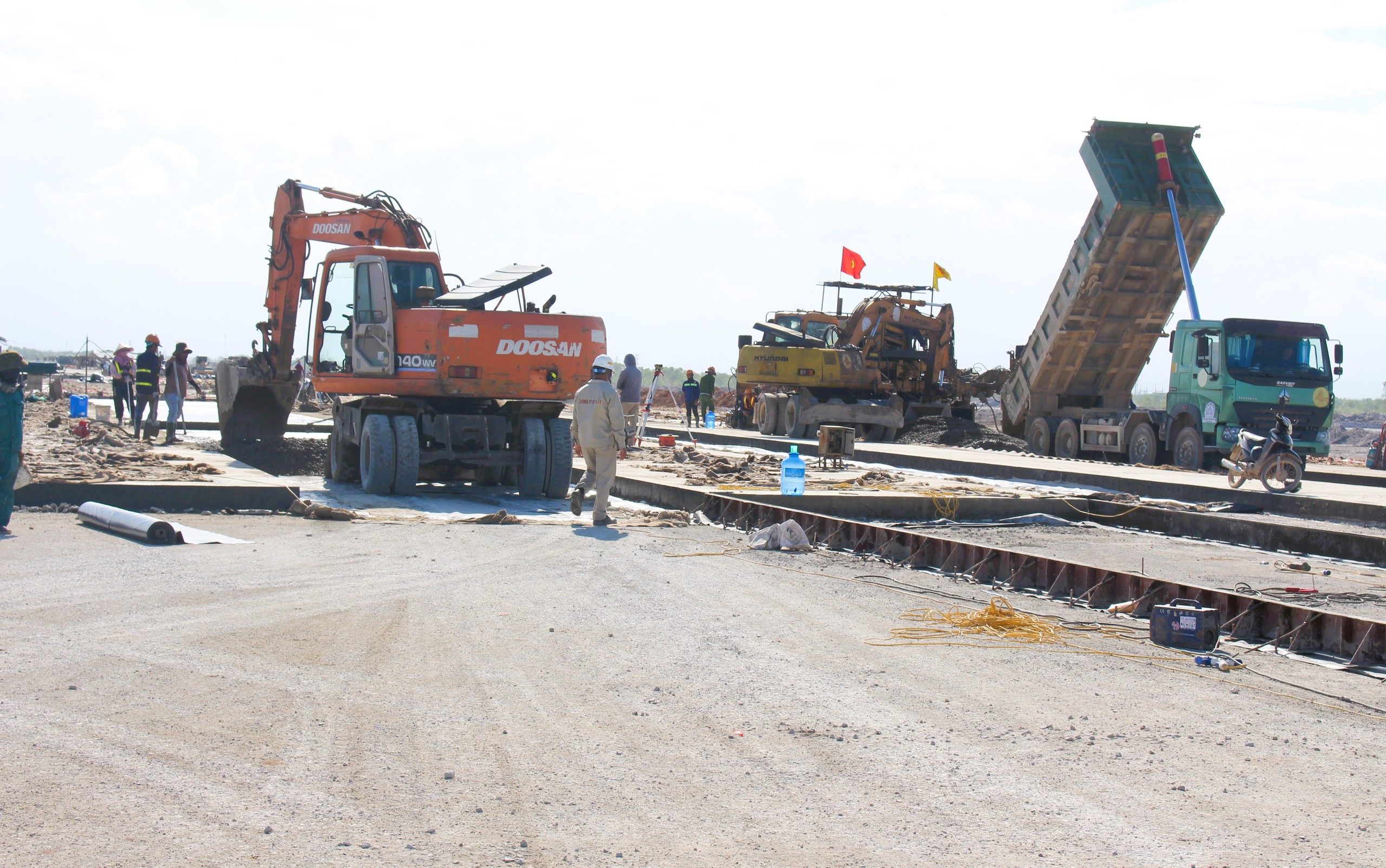 Thi công đường cất hạ cánh tại dự án Cảng hàng không Quảng Trị.