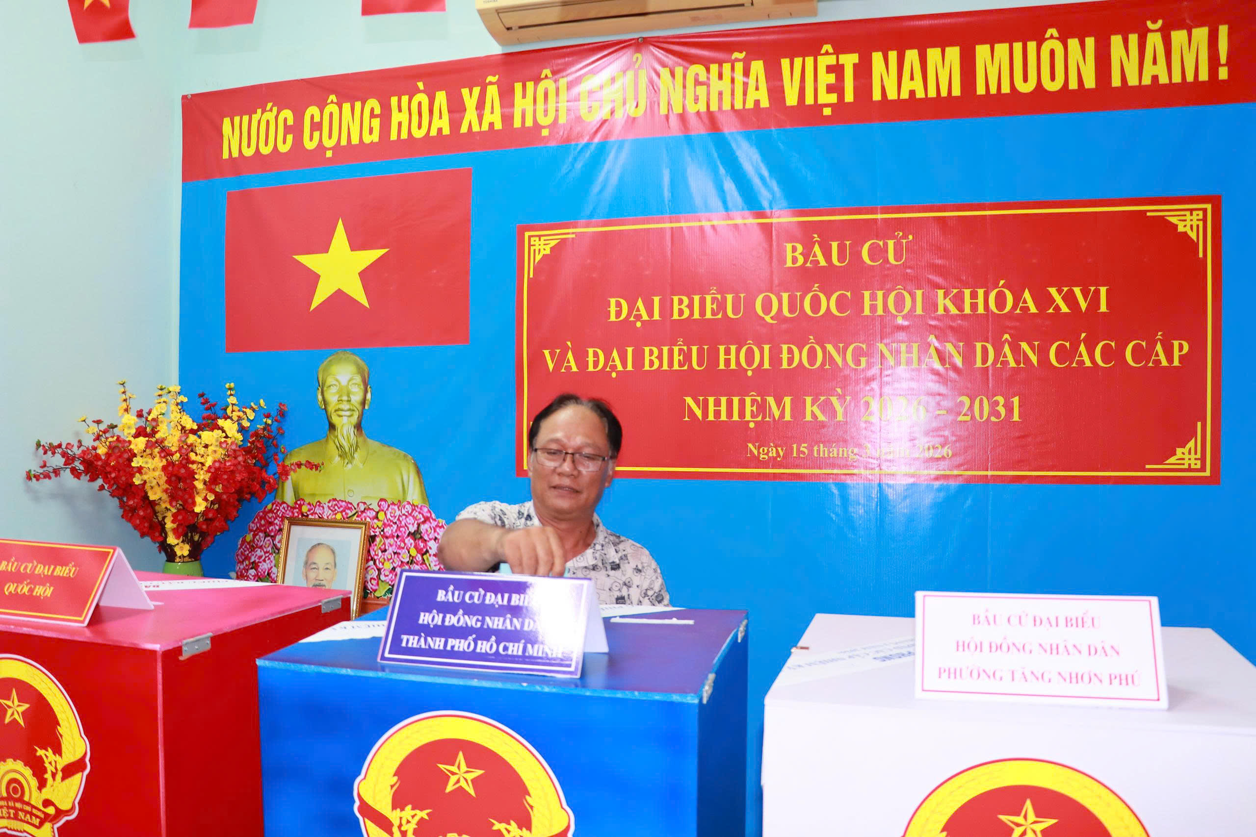 Cử tri bỏ phiếu bầu đại biểu HĐND TP.HCM tại khu vực bỏ phiếu số 25, phường Tăng Nhơn Phú, TP.HCM. Ảnh: THANH THÙY