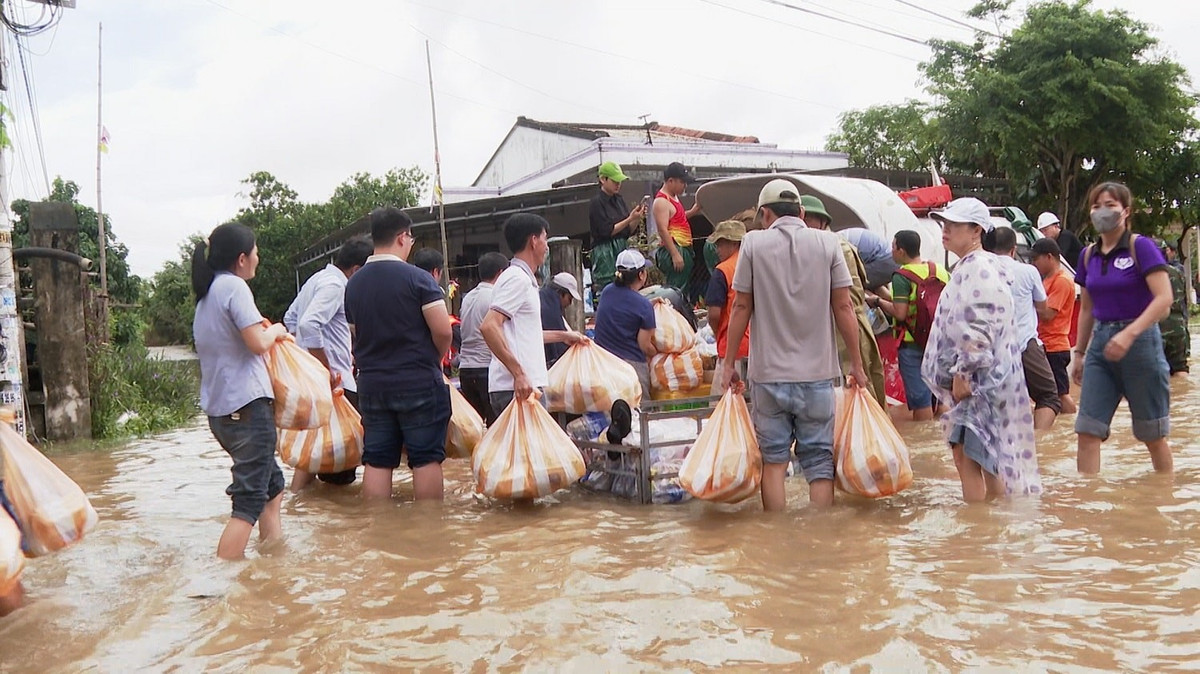 Sau khi nước lũ bắt đầu rút cũng là lúc những chuyến hàng cứu trợ đã được chuyển đến bà con trong vùng ngập sâu.