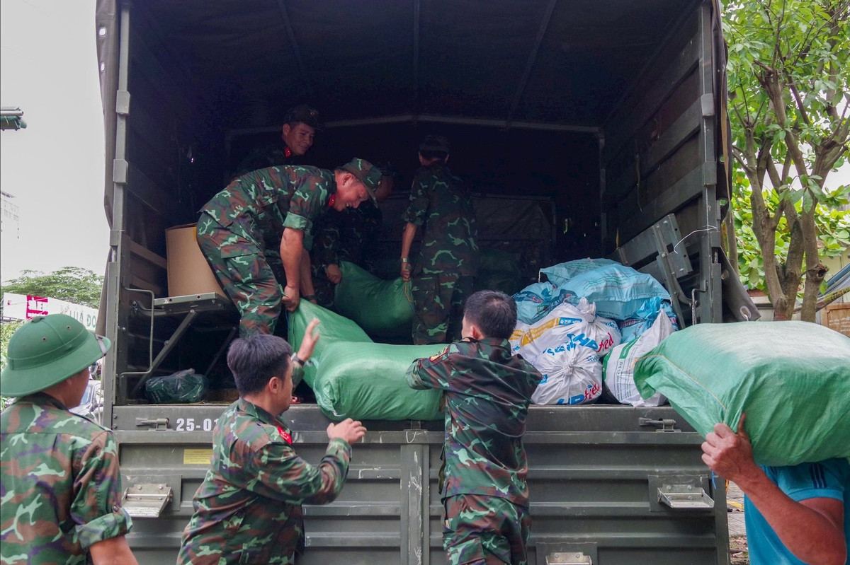 Bộ Chỉ huy Quân sự TP Đà Nẵng phối hợp Sở Công Thương vận chuyển và cấp phát 6 tấn gạo để hỗ trợ người dân chịu thiệt hại nặng trong đợt mưa lũ vừa qua.