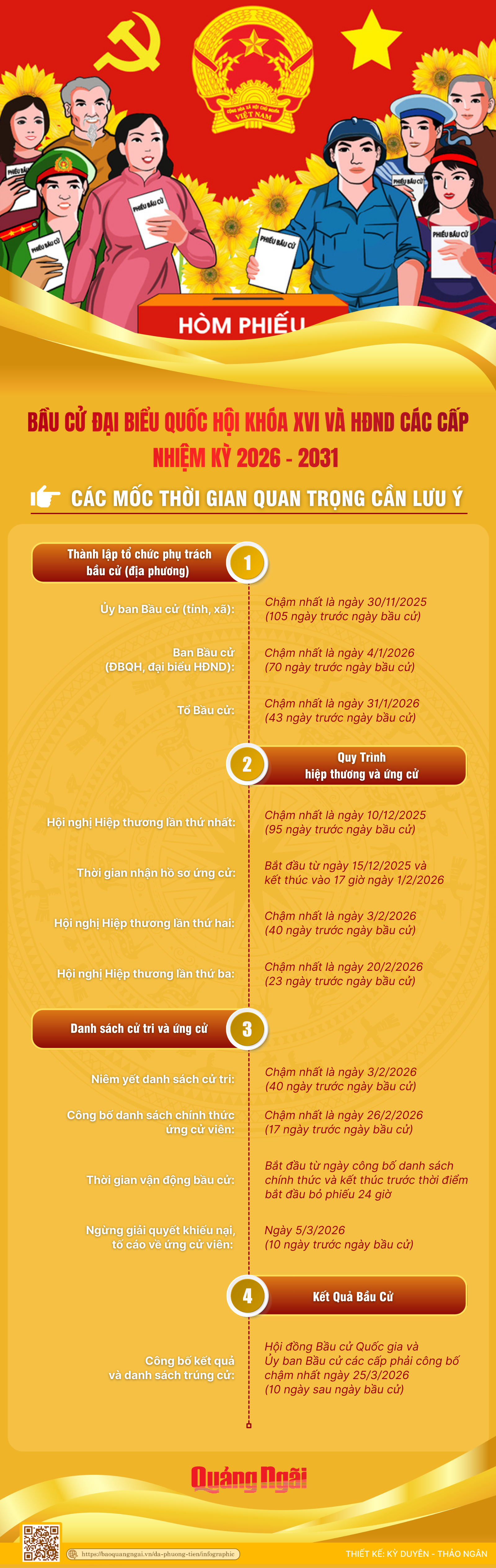 Nguồn Quảng Ngãi : https://baoquangngai.vn/infographic-cac-moc-thoi-gian-quan-trong-to-chuc-bau-cu-dai-bieu-quoc-hoi-khoa-xvi-va-hdnd-cac-cap-nhiem-ky-2026-2031-69960.htm