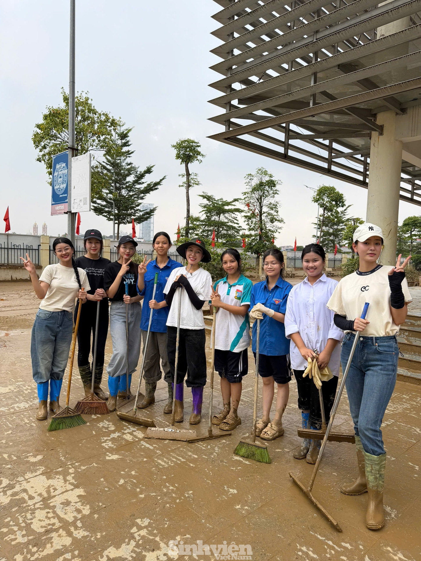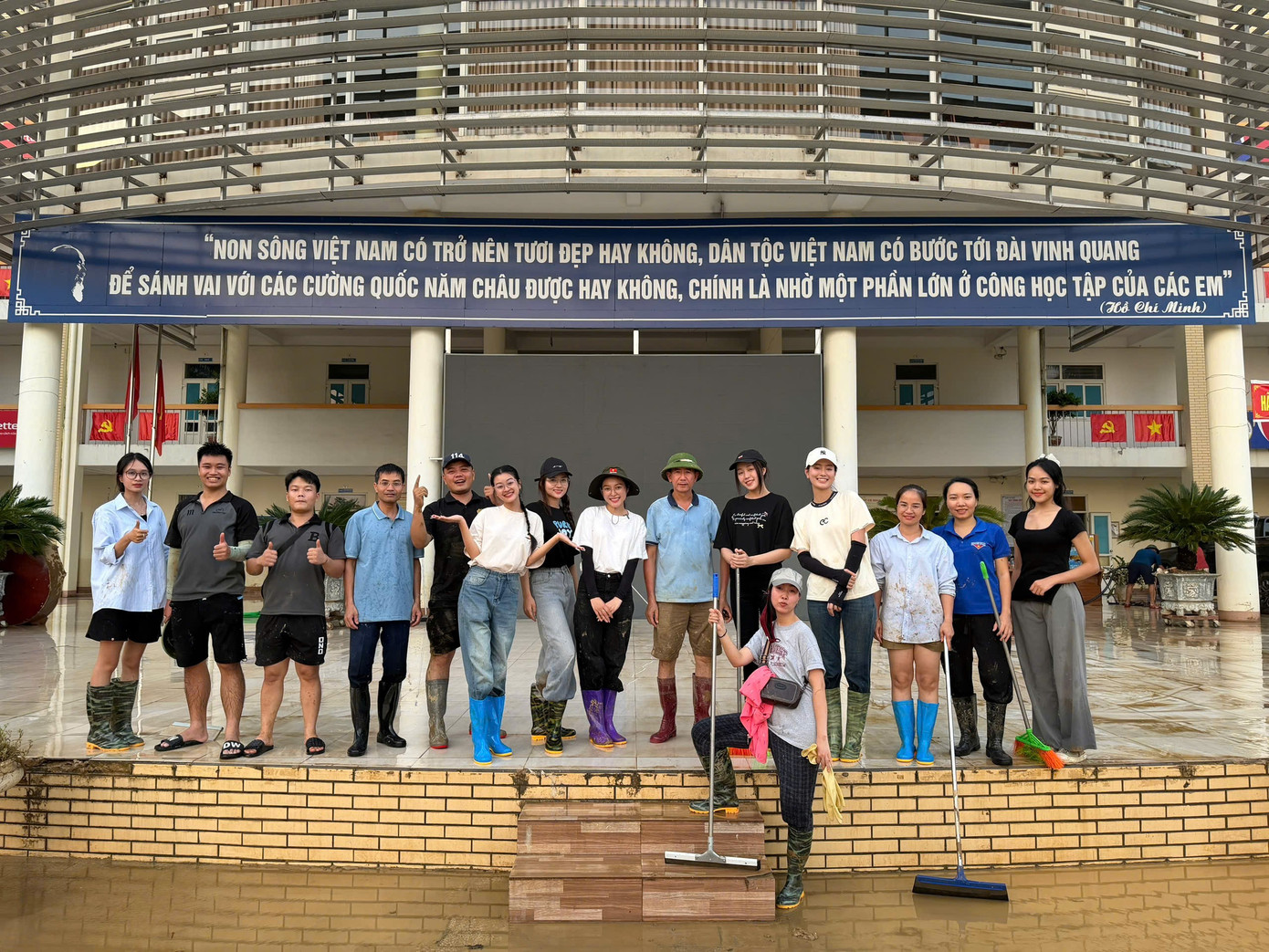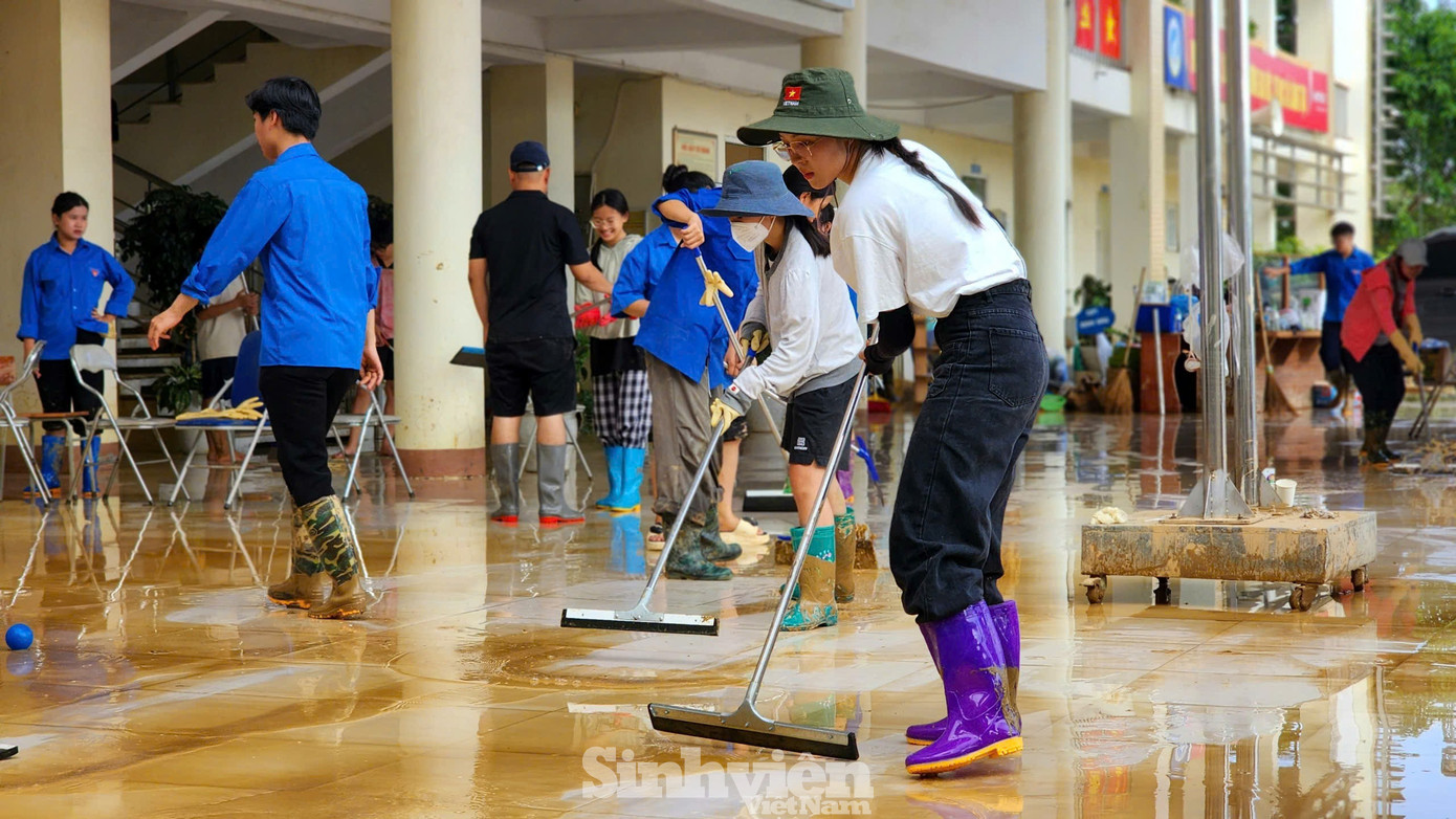 Ngay khi đặt chân tới nơi, các "nàng Hậu" nhanh chóng bắt tay vào công việc, cùng nhau dọn dẹp bùn đất, thu gom rác thải, vệ sinh khuôn viên sân trường, phòng học và cơ sở vật chất bị ảnh hưởng. Hoạt động được thực hiện khẩn trương trong vòng một ngày, với mong muốn sớm khôi phục môi trường học tập an toàn, sạch sẽ, giúp các em học sinh sớm trở lại trường sau bão lũ.