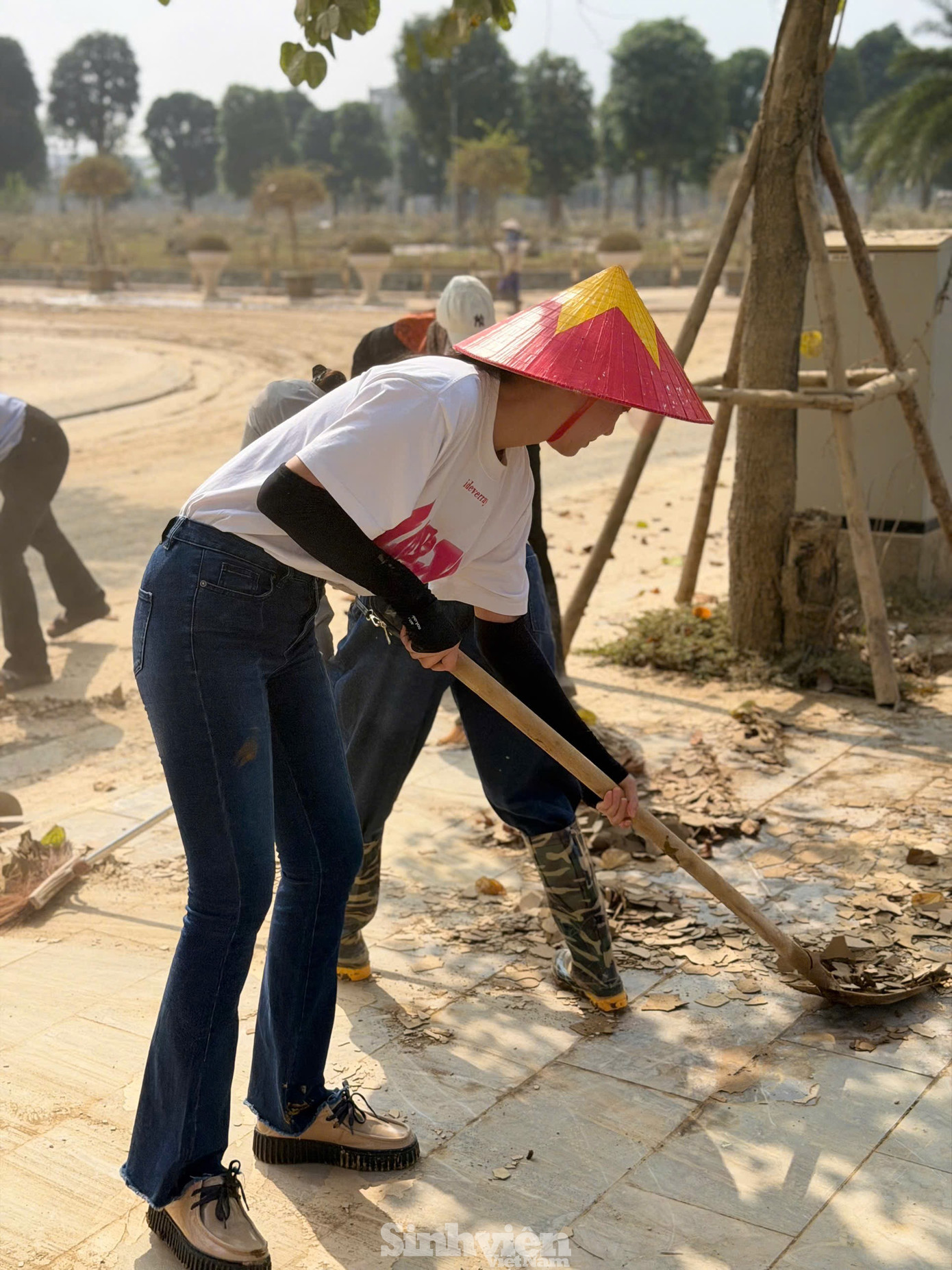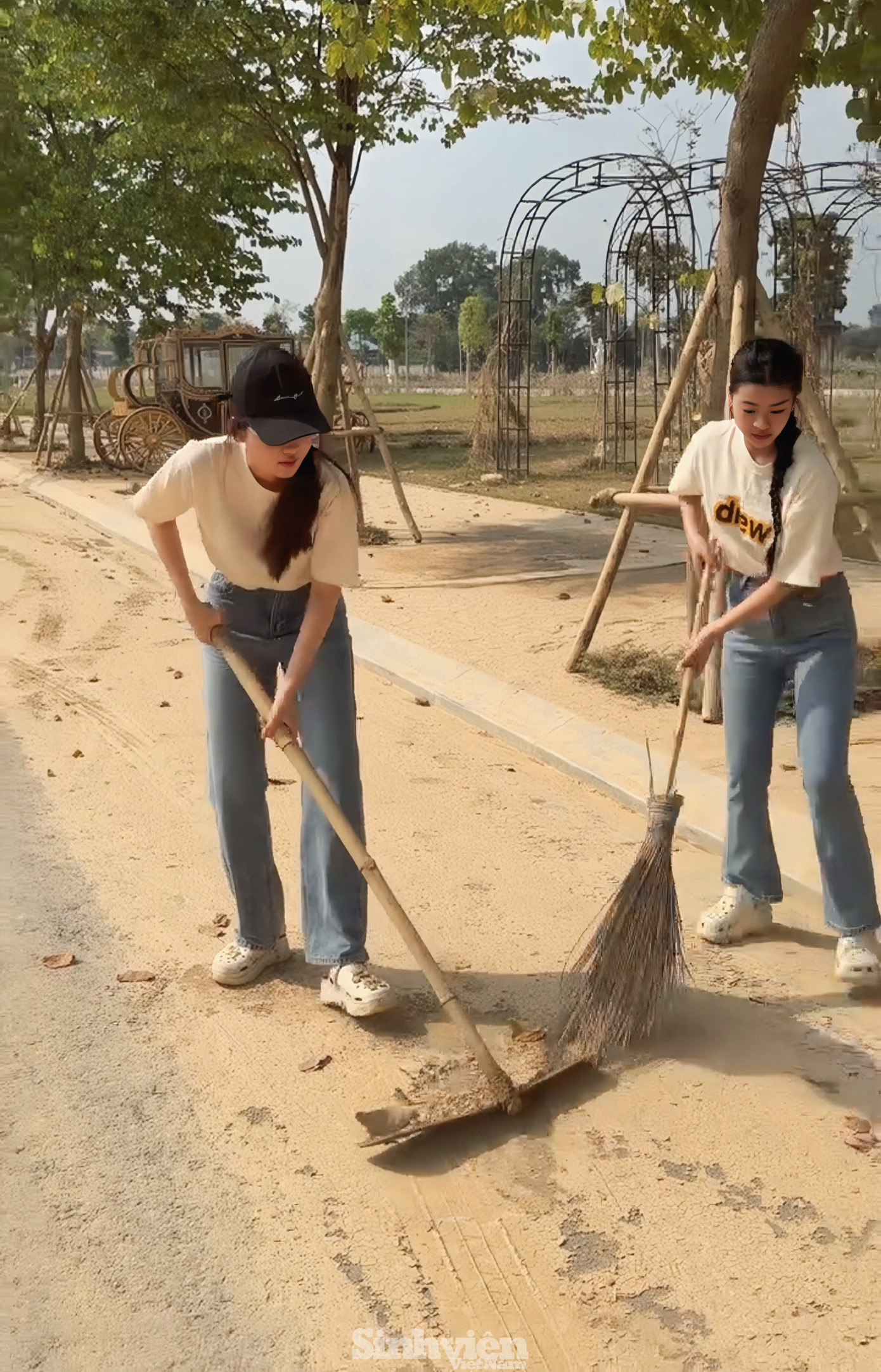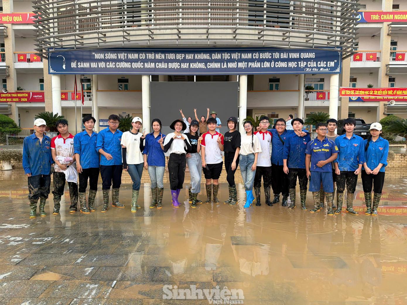 Ngay khi đặt chân tới nơi, các "nàng Hậu" nhanh chóng bắt tay vào công việc, cùng nhau dọn dẹp bùn đất, thu gom rác thải, vệ sinh khuôn viên sân trường, phòng học và cơ sở vật chất bị ảnh hưởng. Hoạt động được thực hiện khẩn trương trong vòng một ngày, với mong muốn sớm khôi phục môi trường học tập an toàn, sạch sẽ, giúp các em học sinh sớm trở lại trường sau bão lũ.