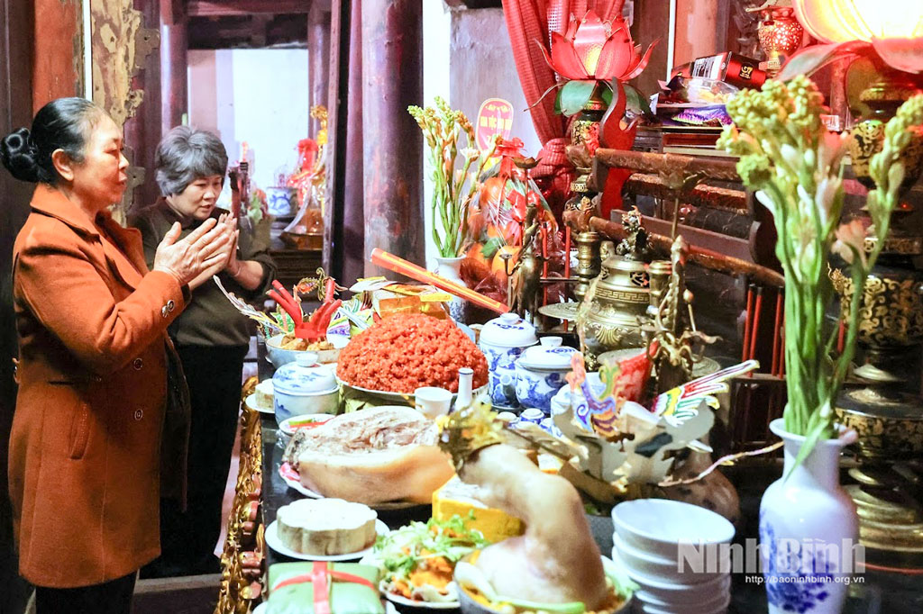 Điểm nhấn của chính hội là chuỗi nghi lễ dâng ẩm thực truyền thống, gồm: dâng cỗ - thi cỗ, thi cá hàng Tổng và thưởng lộc Thánh. Tham gia nghi lễ có hơn 50 mâm cỗ do 20 thôn, xóm trong xã chuẩn bị, với đầy đủ lễ vật truyền thống như hoa quả, bánh chưng, bánh giầy, lợn, cá trắm, giò chả, đồ đường, xôi gà… Trong đó, hai mâm Cỗ Ngọc và Cỗ Các gây ấn tượng bởi kỹ thuật chế biến công phu, hình thức trình bày giàu tính thẩm mỹ, hàm chứa những biểu tượng tâm linh sâu sắc, thể hiện rõ tinh thần “kính Thánh - trọng nghĩa - gắn kết cộng đồng”.