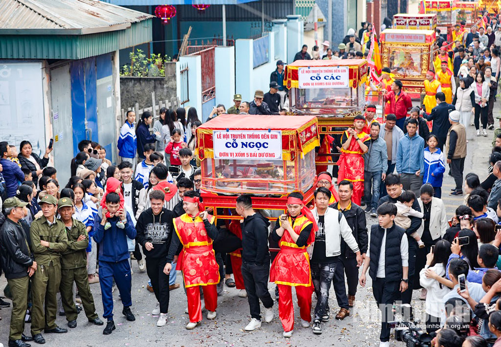 Các kiệu cỗ được rước về đền.