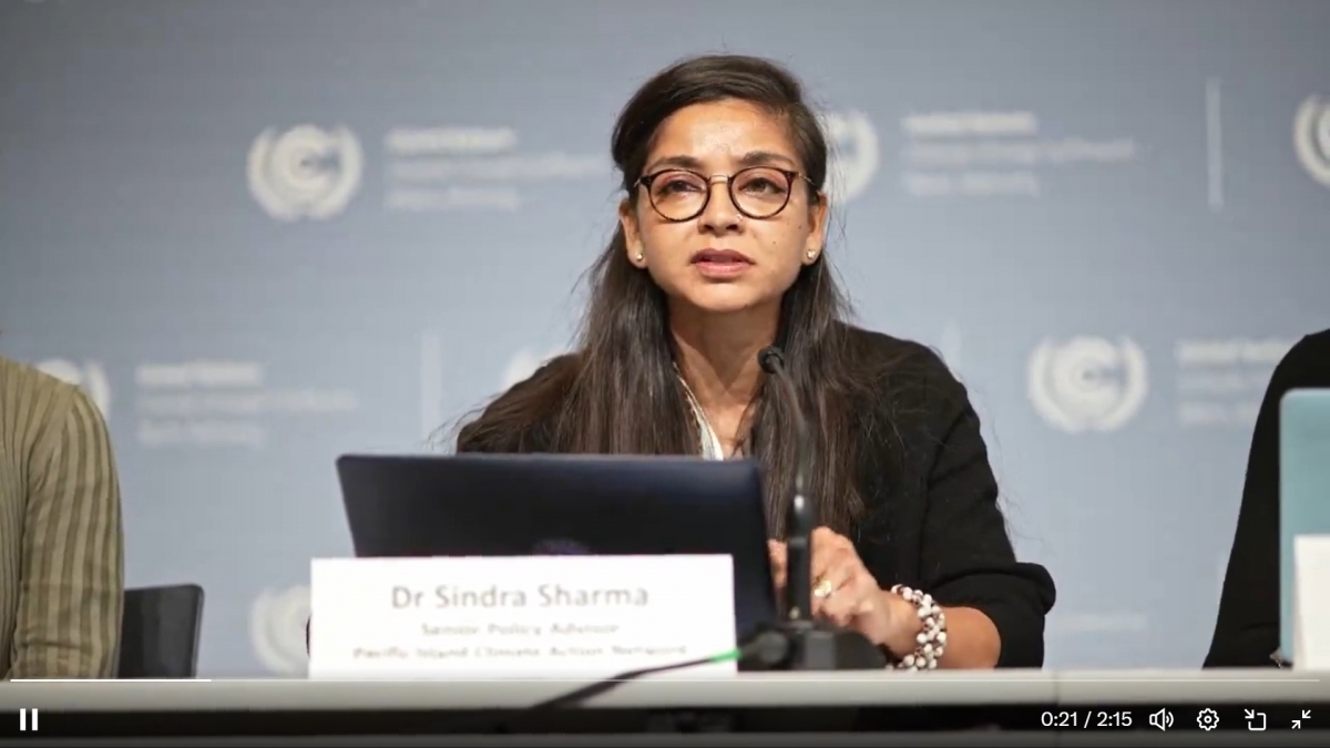 Bà Sindra Sharma, chuyên gia tư vấn chính sách của Mạng lưới hành động vì khí hậu của các quốc đảo Thái Bình Dương.