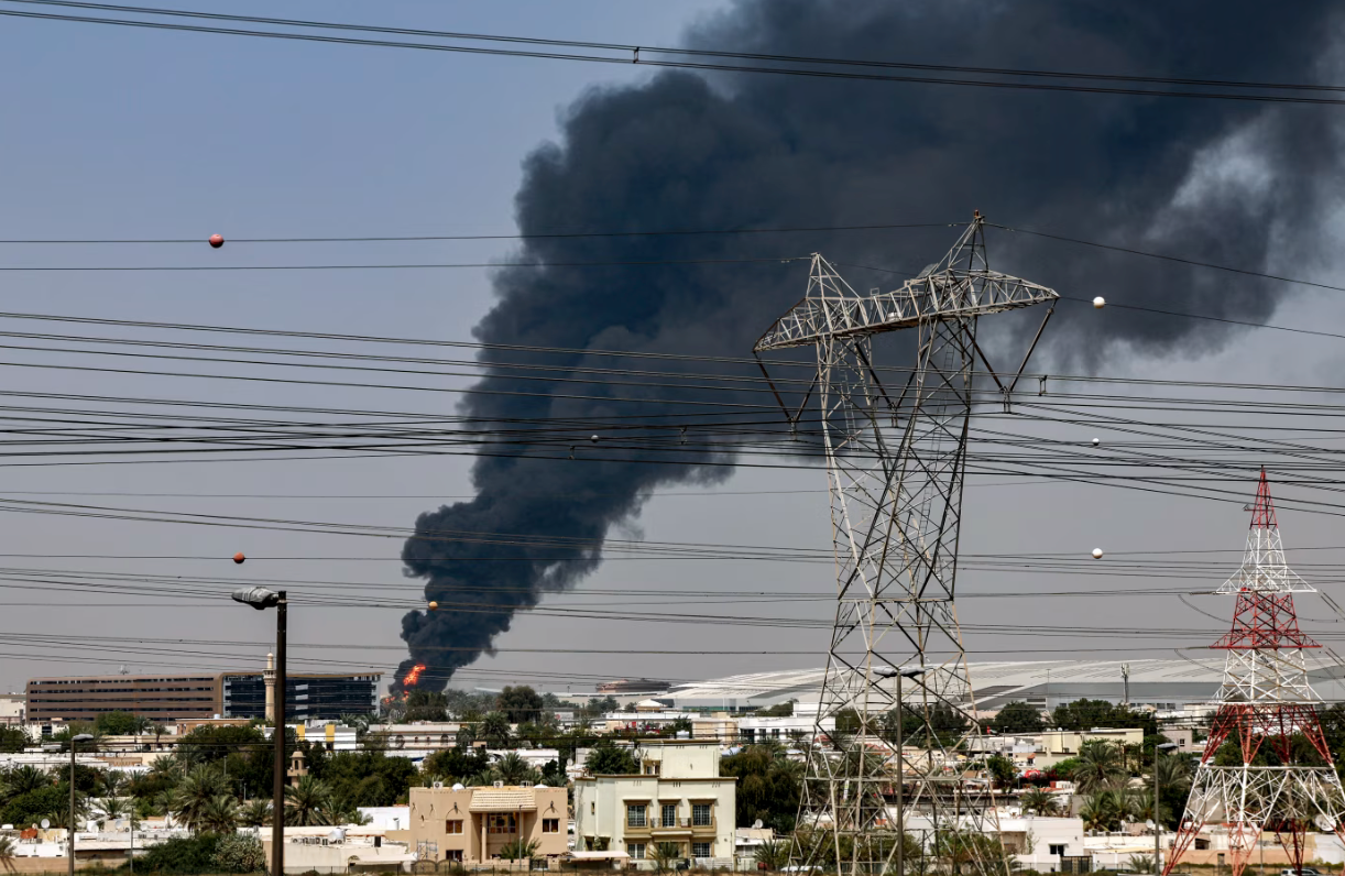 Một vụ hỏa hoạn tại Sân bay Quốc tế Dubai tháng trước sau cuộc tấn công của Iran vào Các Tiểu vương quốc Arab Thống nhất. Ảnh: Getty Images