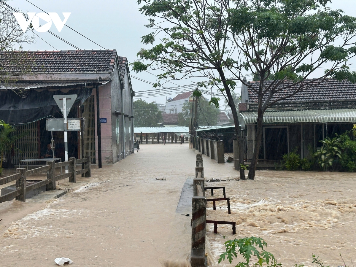 Mưa lũ tràn qua một khu dân cư ở Tuy An Bắc