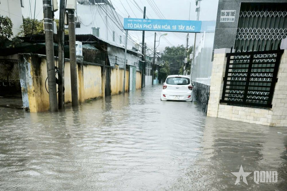 Các phường Nha Trang, Bắc Nha Trang, Tây Nha Trang nhiều tuyến đường ngập sâu. Các tuyến đường Nguyễn Khuyến, 2 Tháng 4, Phạm Văn Đồng đều trong tình trạng ngập từ 40cm đến gần 1m. Nhiều xe máy bị chết máy, hư hỏng nặng, người dân phải dắt bộ hoặc quay đầu tìm đường khác.