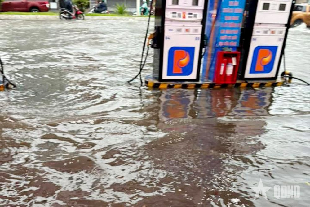 Cây xăng Vĩnh Hải, đường 2/4 ngập sâu trong nước.