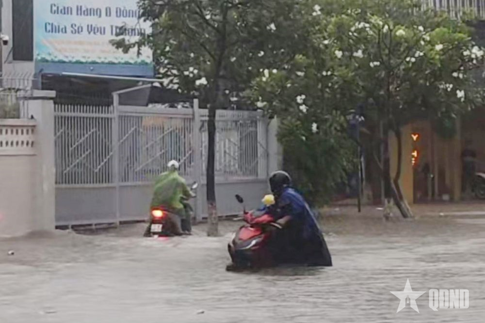 Đến 10 giờ sáng cùng ngày, mưa vẫn không ngớt. Nước từ các khu vực cao đổ dồn về trung tâm khiến nhiều tuyến đường ngập sâu, giao thông ùn tắc nghiêm trọng.