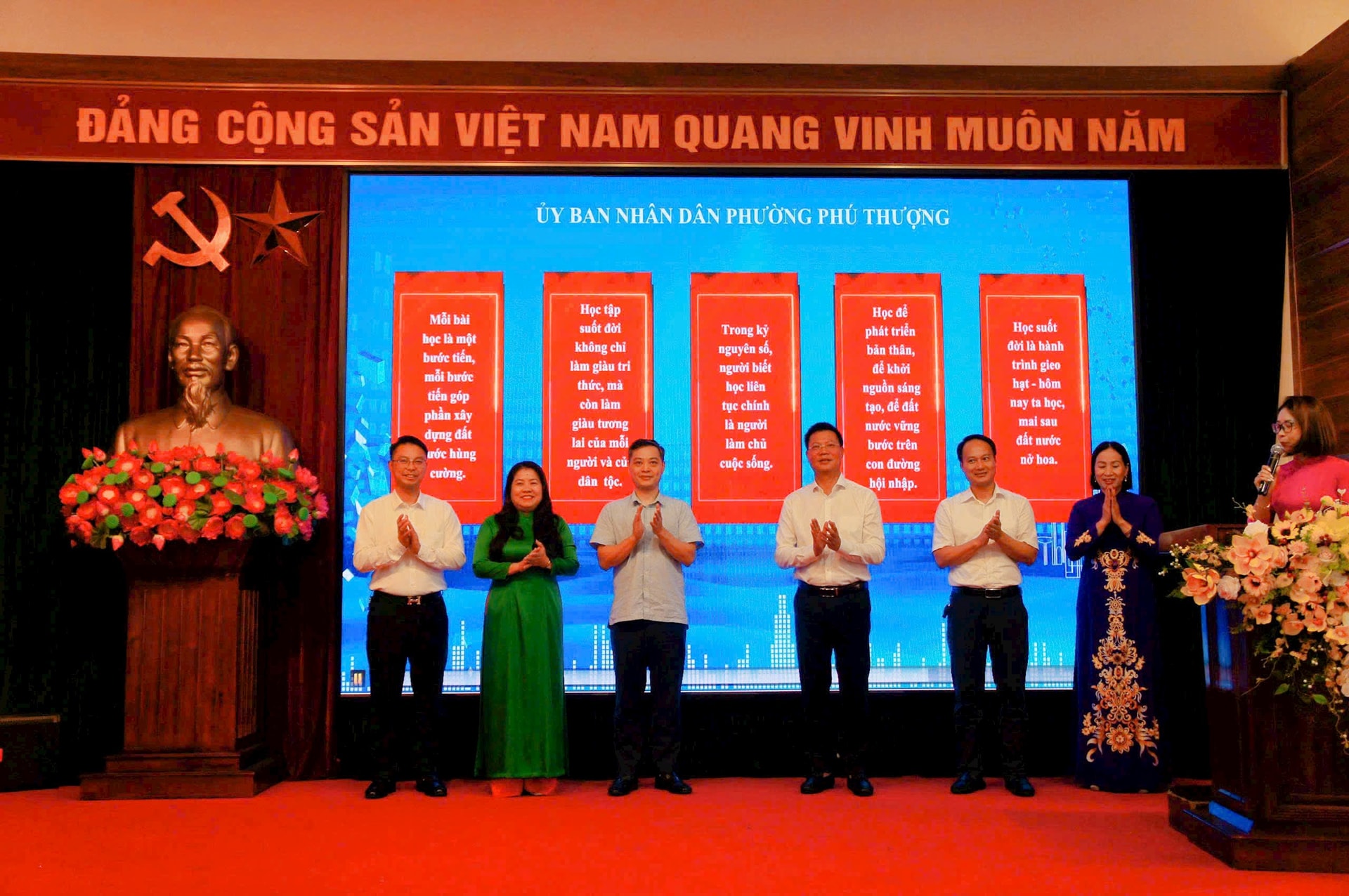 Phát biểu tại lễ phát động, Bí thư Đảng ủy, Chủ tịch HĐND phường Phú Thượng Nguyễn Quốc Hà, nhấn mạnh, Chủ tịch Hồ Chí Minh từng căn dặn: “Học để làm việc, học để làm người, học để làm cán bộ. Học để phụng sự đoàn thể, giai cấp và nhân dân, Tổ quốc và nhân loại”. Những lời dạy ấy đến nay vẫn còn nguyên giá trị, soi đường cho sự nghiệp giáo dục và phát triển con người Việt Nam trong thời kỳ mới.
