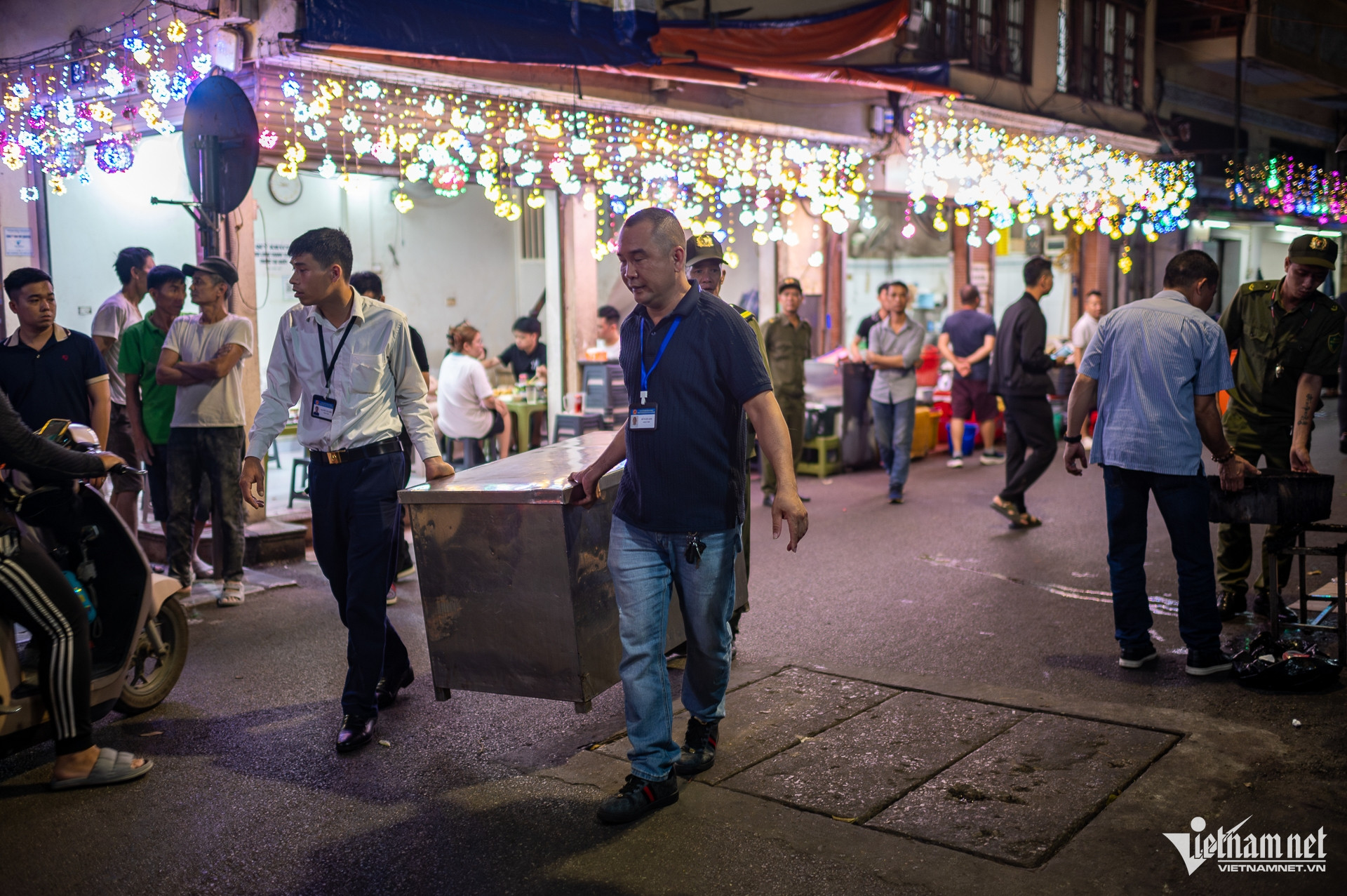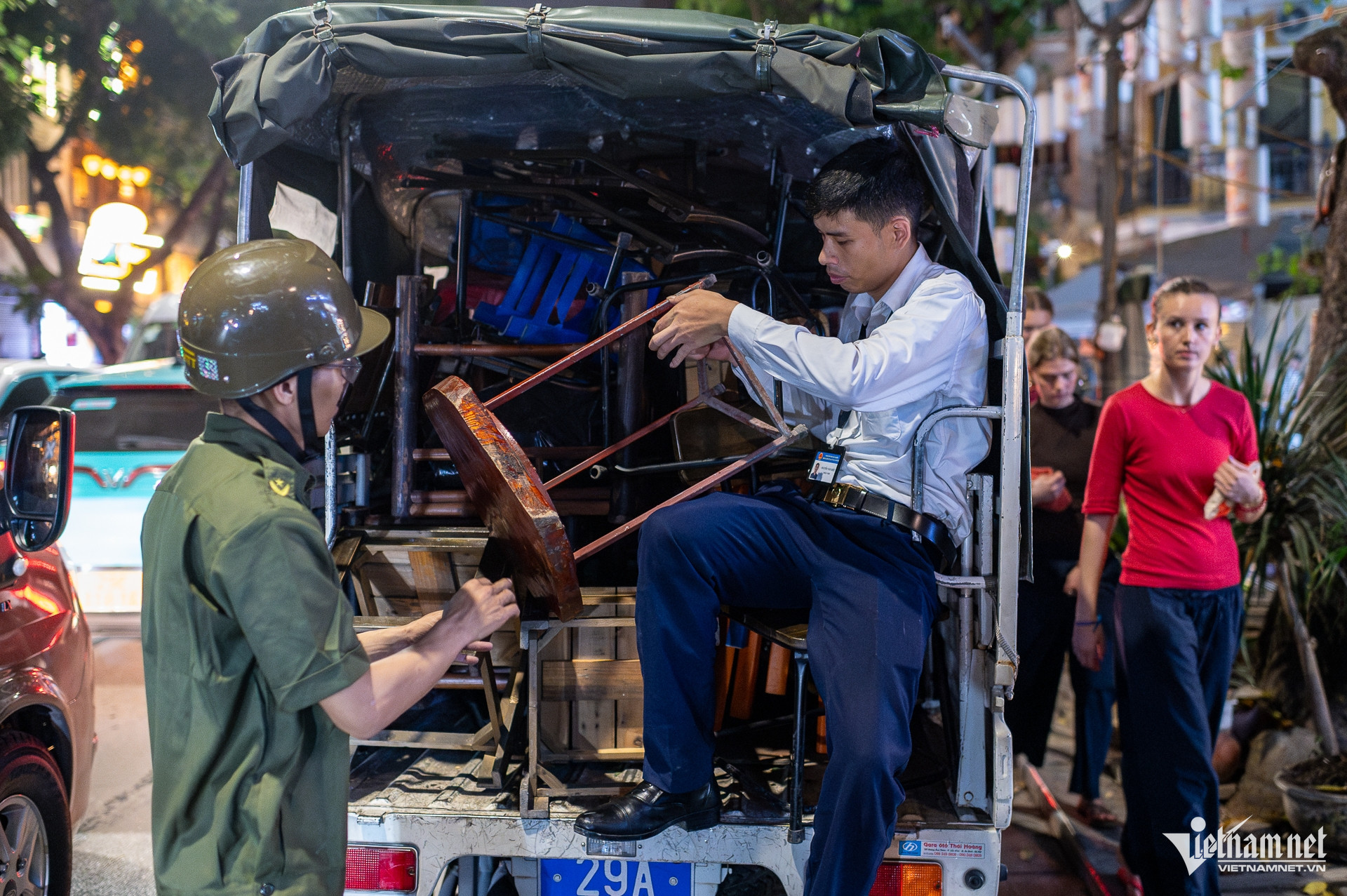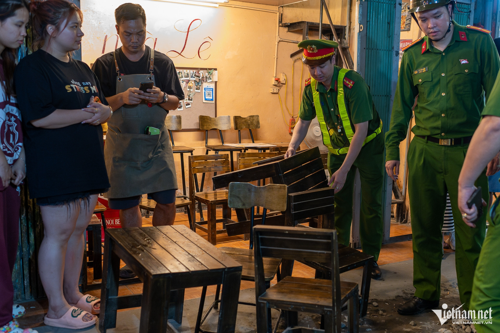 Ngay khi lực lượng Công an phường Hoàn Kiếm có mặt, các quán vội vàng thu dọn bàn ghế, đóng cửa.