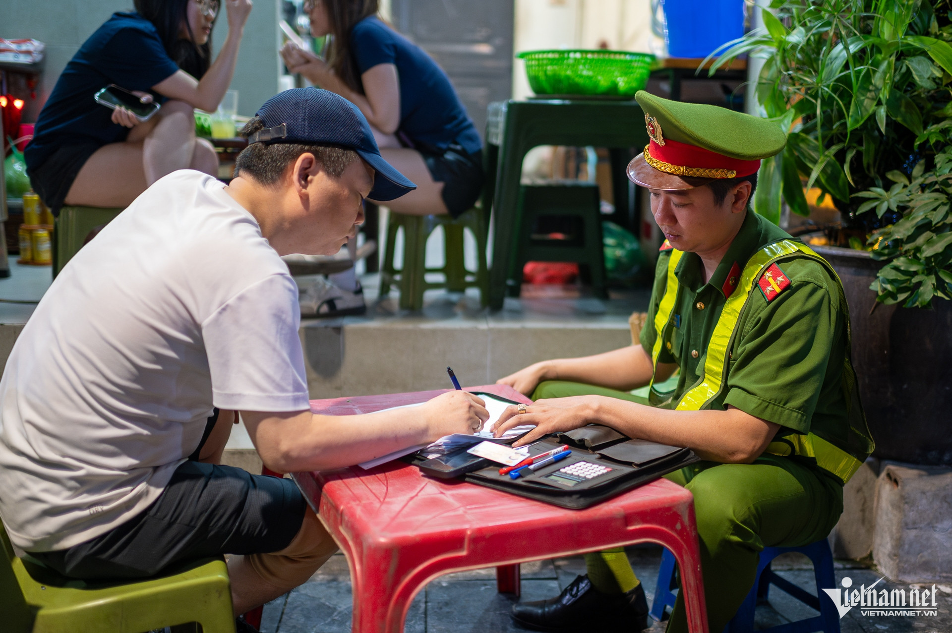 Thông qua hình ảnh ghi nhận từ trước, Công an phường Hoàn Kiếm tiến hành xác minh, xử lý các hàng quán vi phạm.